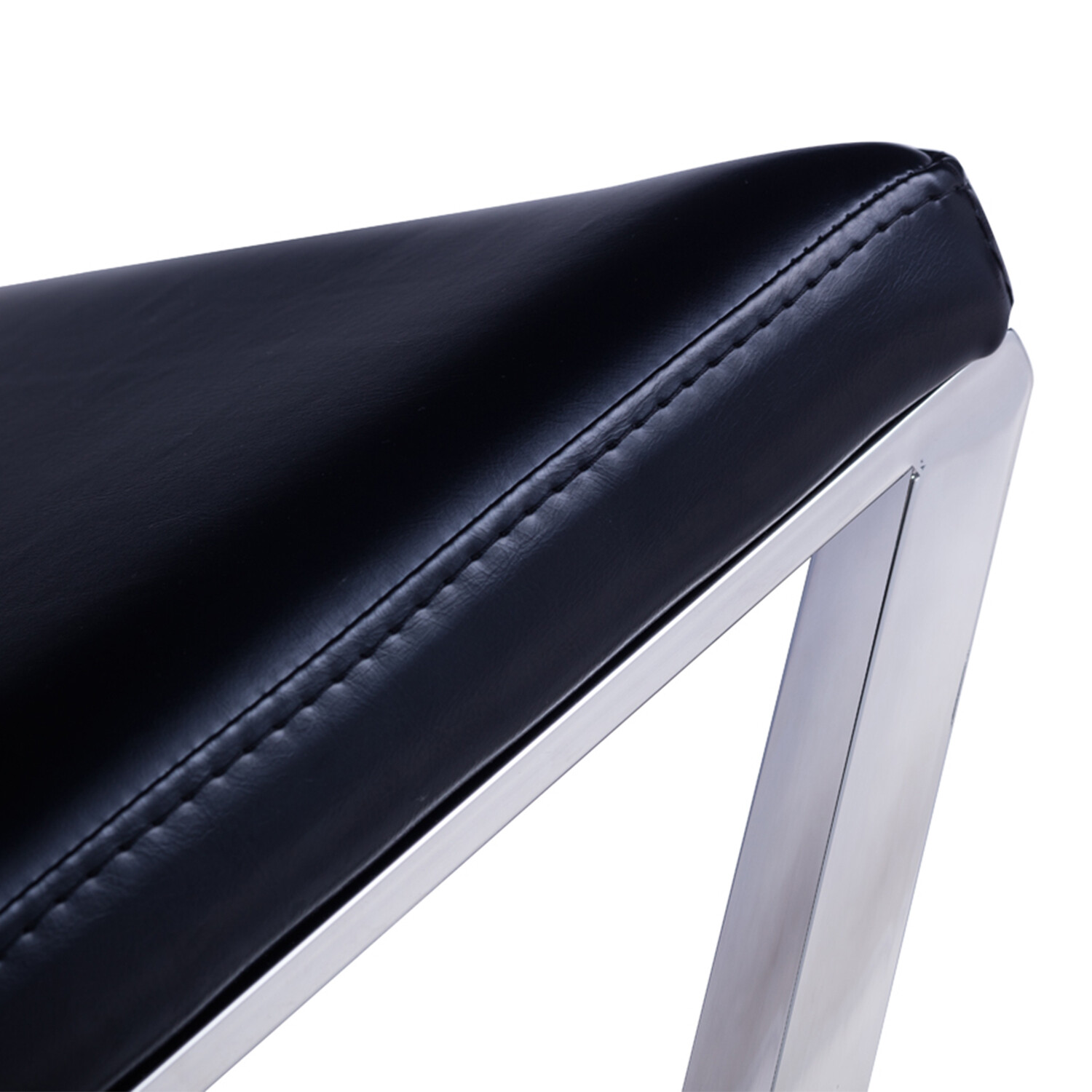 The Pasargad Faux Leather bench provides a luxurious auxiliary seating option for any room and adds a dose of elegance to any setting. The stainless steel base and the high density foam filled cushion lends to the durability and functional convenience of the bench, while the beautiful black faux leather makes it a stand-out piece for your modern home.