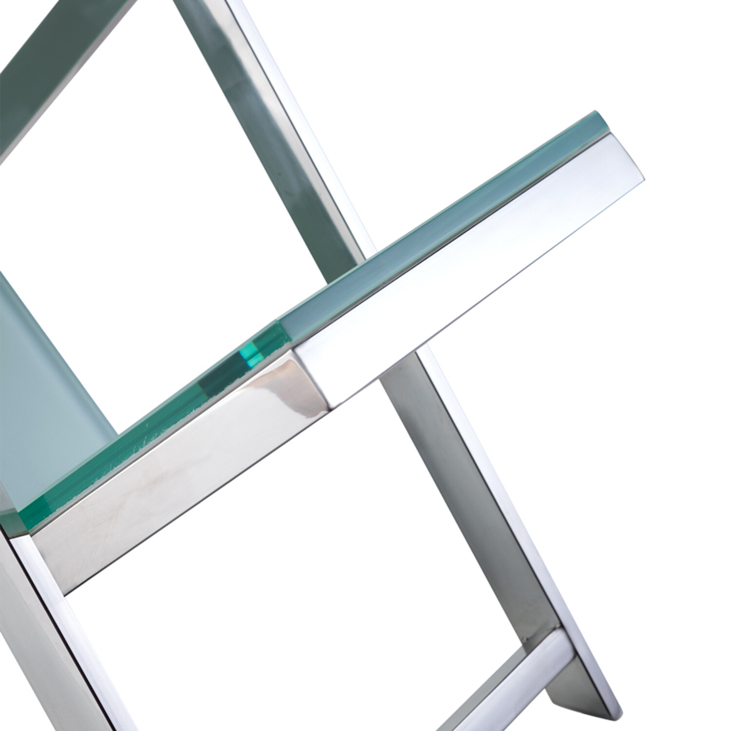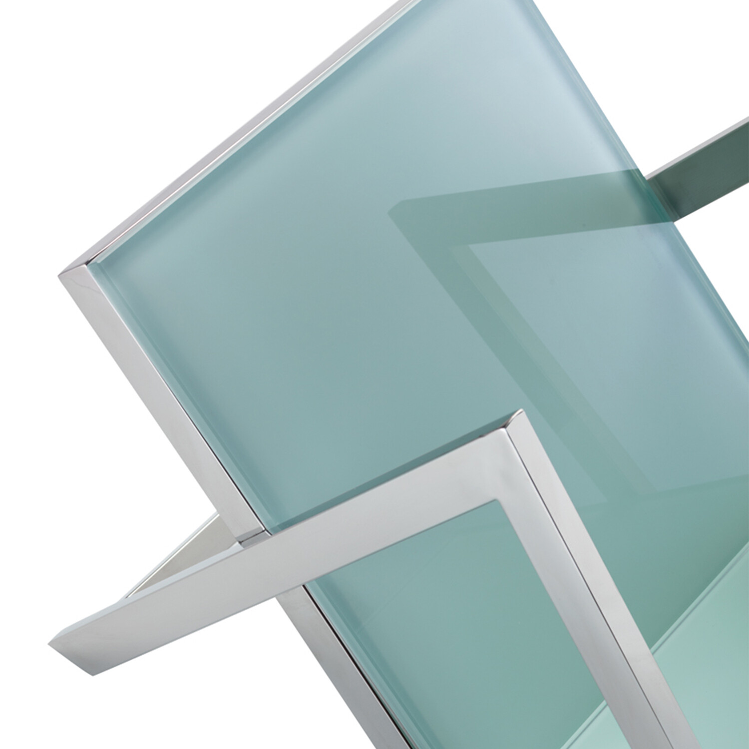 Organization meets modern styling with this fashion forward magazine rack. The glass design and steel metal legs give this piece a modern edge that will blend effortlessly with your decor. This Portfino rack offers the perfect storage solution for books, magazines, and electronic devices.