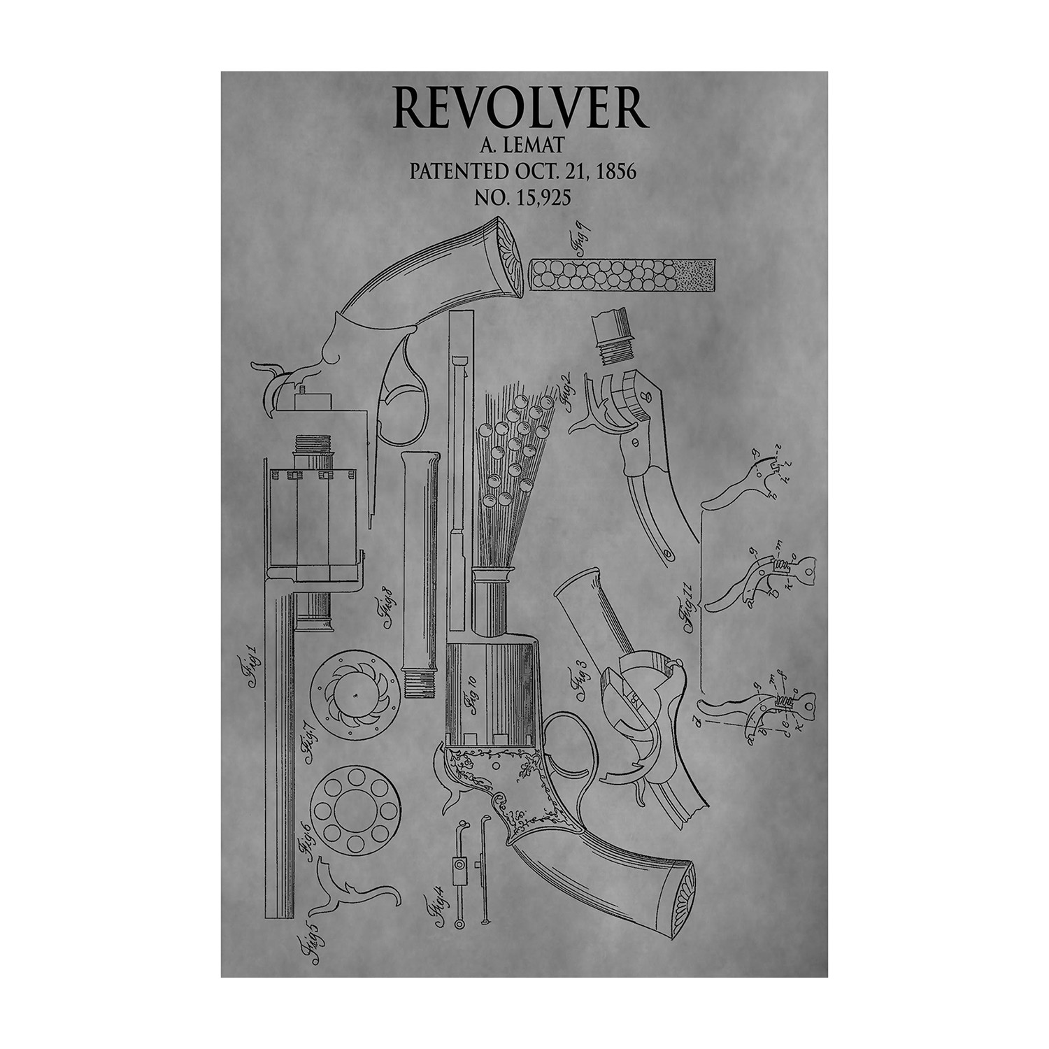 Revolver, 1856 is from a specially curated collection of vintage gun and hunting renderings. These nostalgic images, created by Dan Sproul, have been designed to highlight the intricate historical details drawn by master gunsmiths and hunting enthusiasts. The results are striking modern images that inspire curiosity and will enhance any interior style. All these images have been faithfully reproduced on your choice of canvas or art satin paper using state of the art digital printing technology.