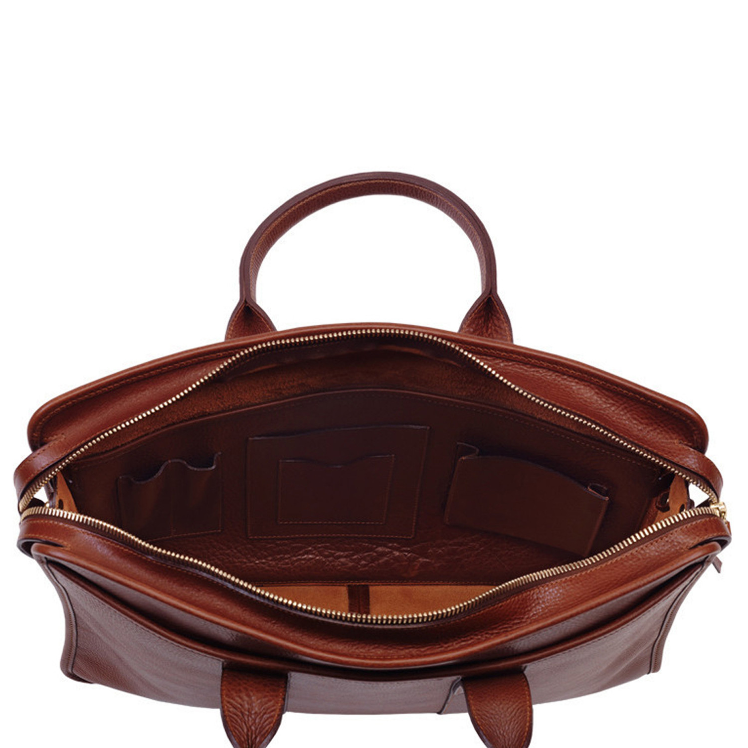 The handmade Liberty Tote is an all leather bag with gold hardware and a top zipper enclosure. Perfect for documents and essentials, it's a welcome addition to a boardroom-ready look.