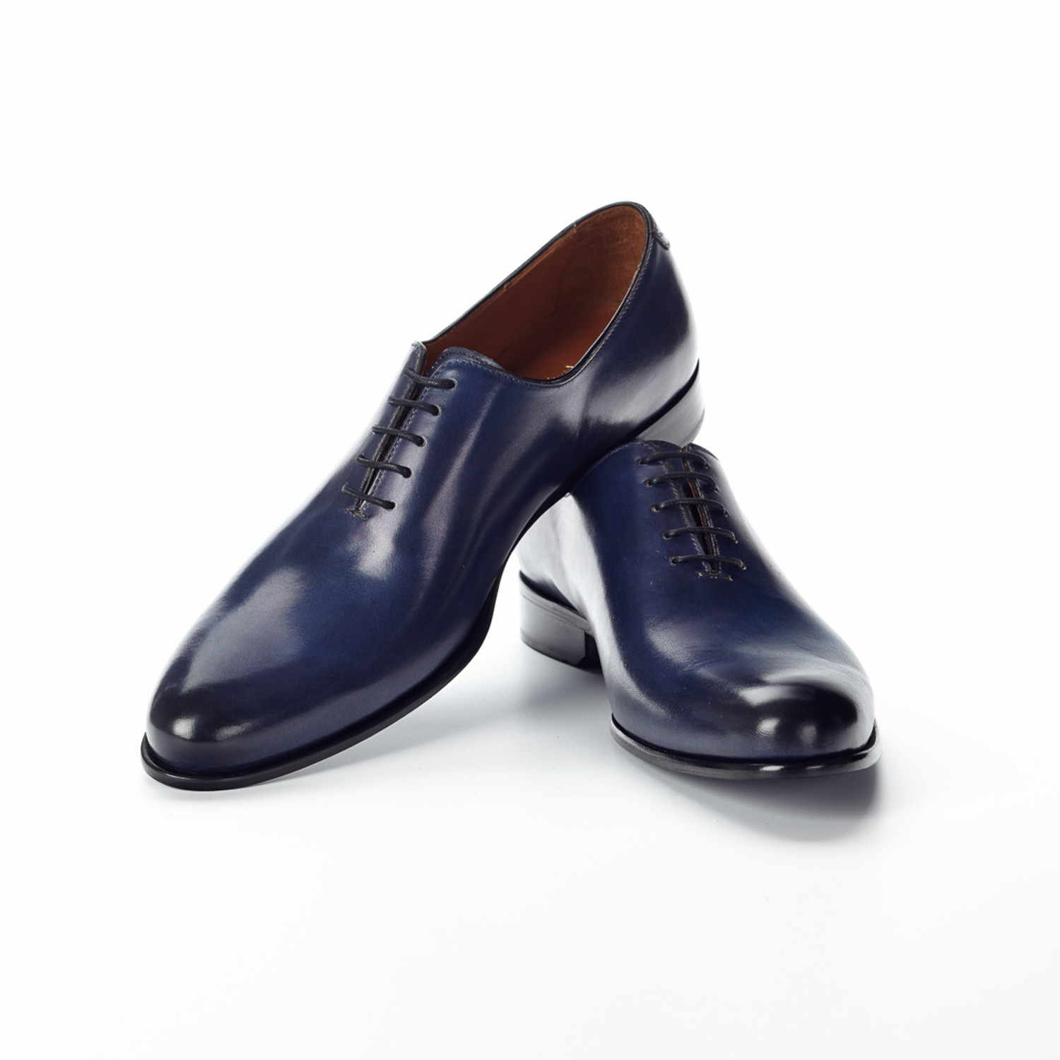 The Martin in Blue is the sharpest dress shoe you'll ever own. Made from a single piece of calfskin leather, this wholecut oxford has a sleek profile that is guaranteed to turn heads.