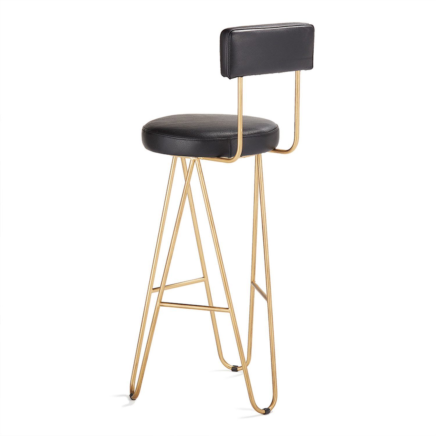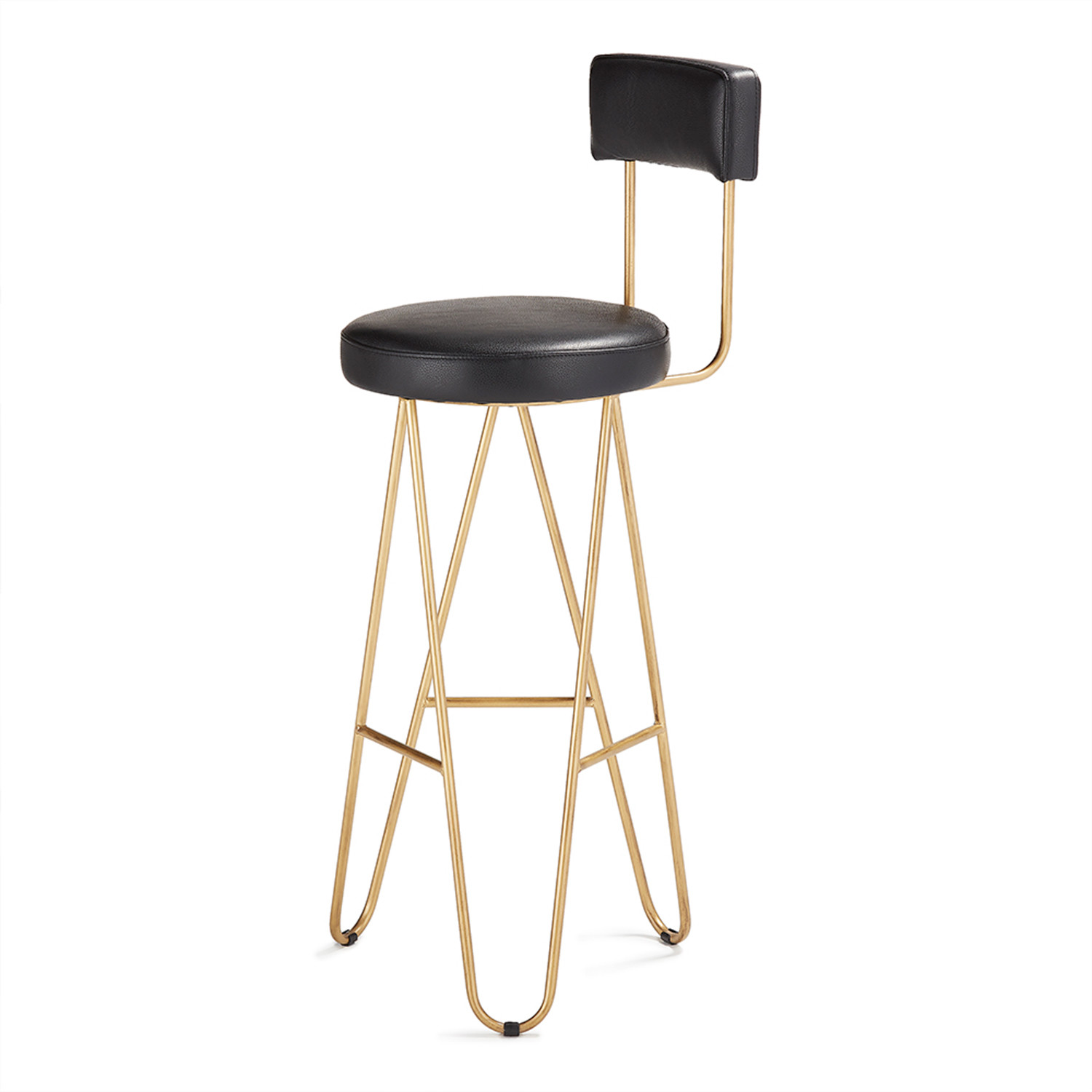 Contemporary styling is made comfortable and versatile in the Belfast Bar Stool. Made of rich, matte black leather with a solid iron frame finished with a gold-toned wash.