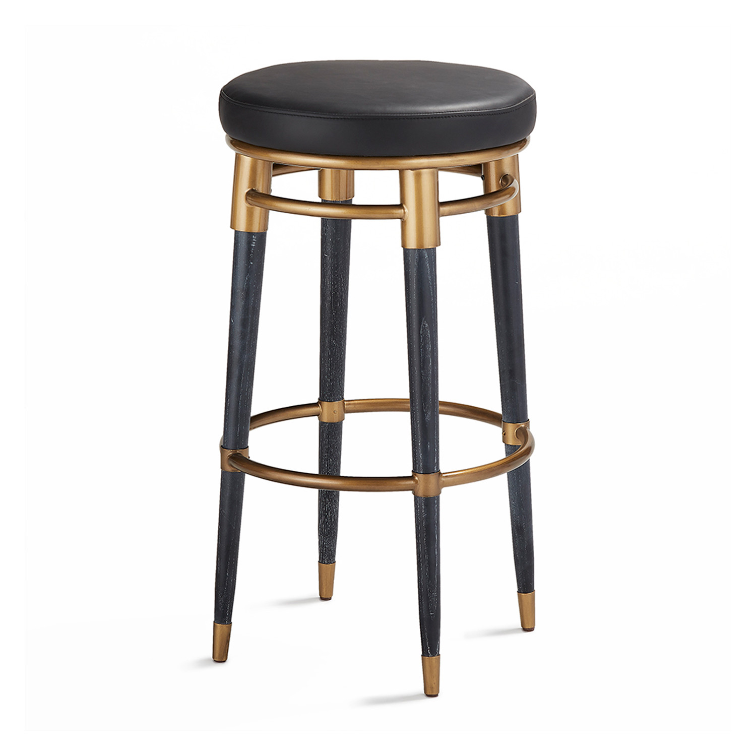 A study in retro elegance, the Perth Bar Stool is made of solid ash that is finished in a striated paint technique. A bronze painted finish is used on the frame and footrest with metal-capped legs. A black leather cushioned seat adds comfort to this stylish stool.