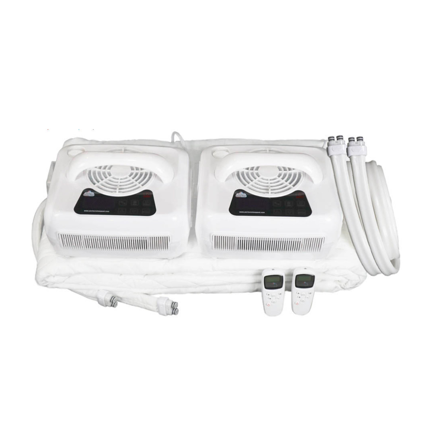 The Perfect Sleep Pad is a mattress pad with a cooling and heating temperature control system. It regulates the surface temperature of your mattress by actively circulating water through a network of micro tubes, maintaining your desired temperature across the whole mattress for perfect sleep. This Dual Zone version has two controllers and cools or warms each side of the bed independently, so you and your partner can each have your desired temperature.