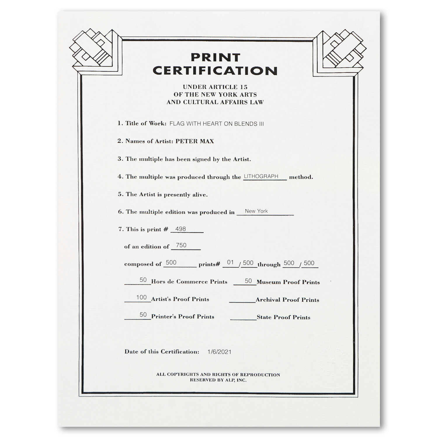 Peter Max is a German-American artist known for his bold, bright works of art. He is most commonly associated with the visual arts and culture of the 1960s, particularly psychedelic and pop art. A combination of Expressionism and Pop Art, Max's work is often dedicated to the country he loves, with the Statue of Liberty and the American flag often being prominent in his painting. This collection of signed artwork highlights Max's longtime success.