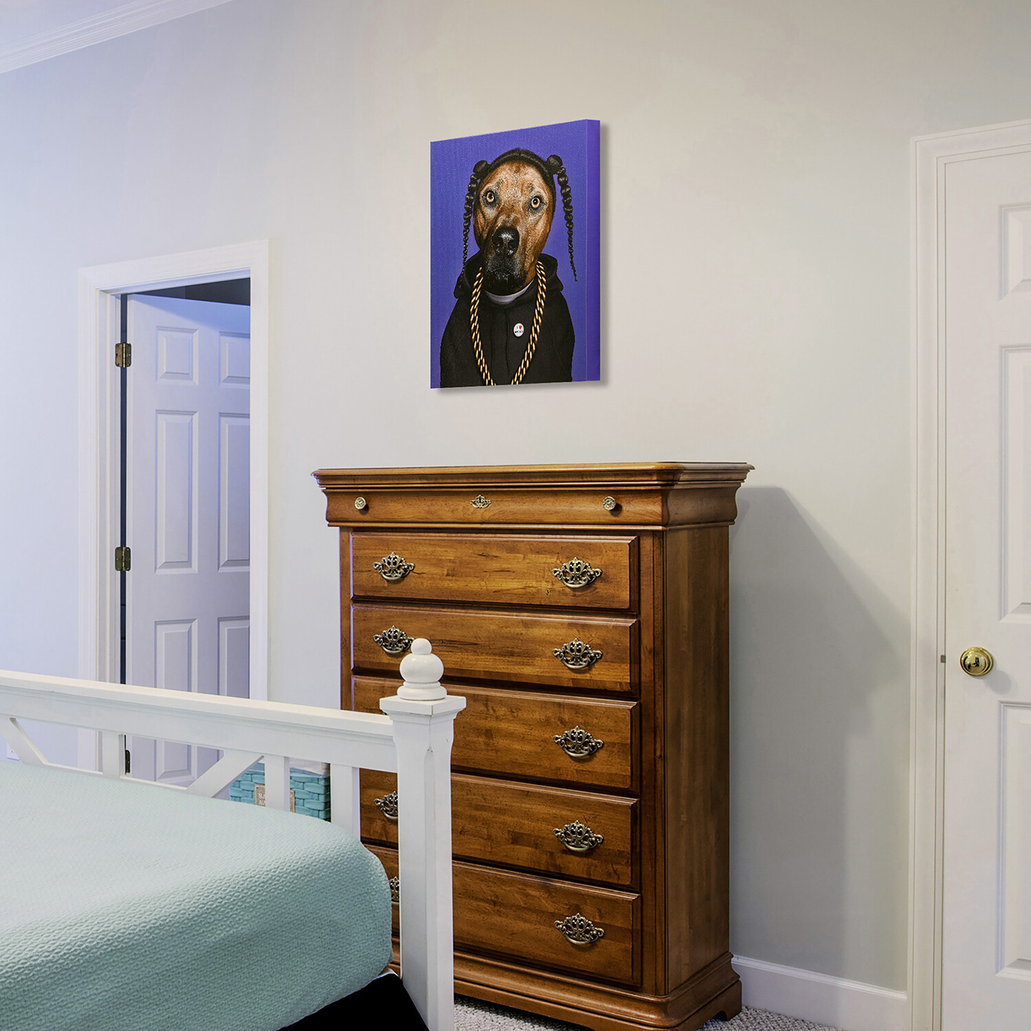 Complement the lighthearted energy of your décor style or contrast a subdued ambiance. Your favorite pup breed is disguised as your favorite pop culture celebrity in these canvases and the result is outright hilarious. Founded by Kate and Mark Polyblank, Pets Rock™ was created to combine their interest in pop culture, the global celebrity phenomenon, and their love of animals.