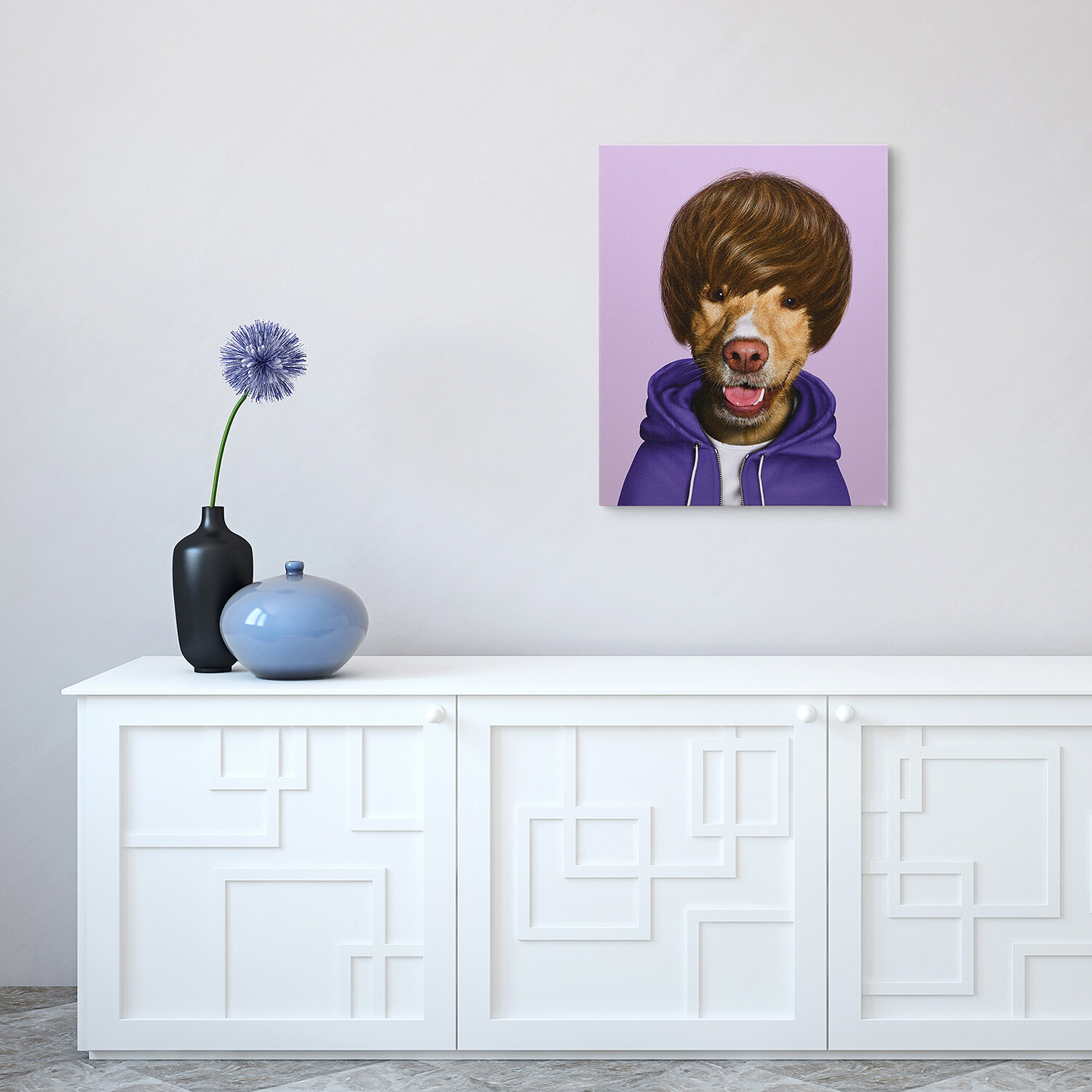 Complement the lighthearted energy of your décor style or contrast a subdued ambiance. Your favorite pup breed is disguised as your favorite pop culture celebrity in these canvases and the result is outright hilarious. Founded by Kate and Mark Polyblank, Pets Rock™ was created to combine their interest in pop culture, the global celebrity phenomenon, and their love of animals.