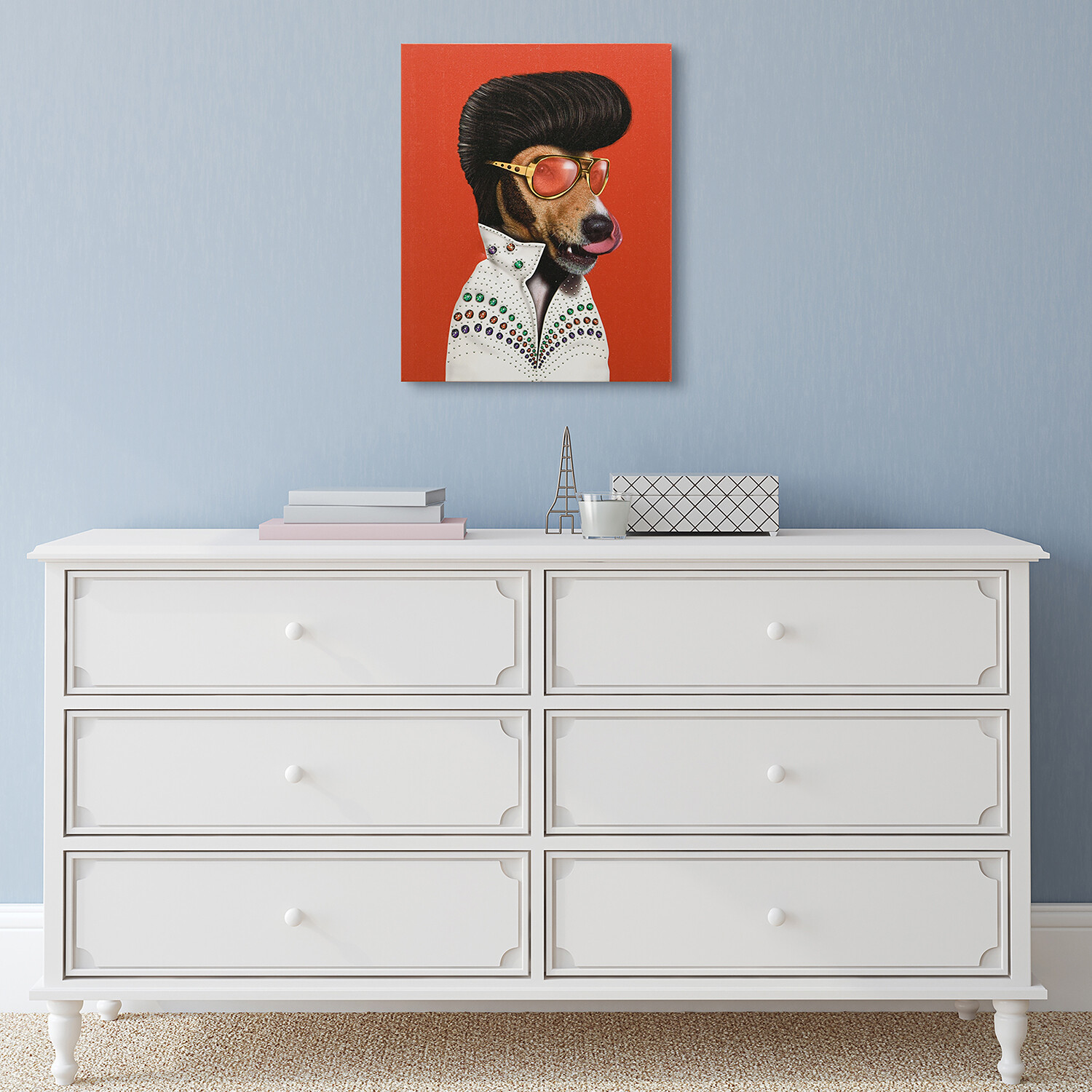 Complement the lighthearted energy of your décor style or contrast a subdued ambiance. Your favorite pup breed is disguised as your favorite pop culture celebrity in these canvases and the result is outright hilarious. Founded by Kate and Mark Polyblank, Pets Rock™ was created to combine their interest in pop culture, the global celebrity phenomenon, and their love of animals.
