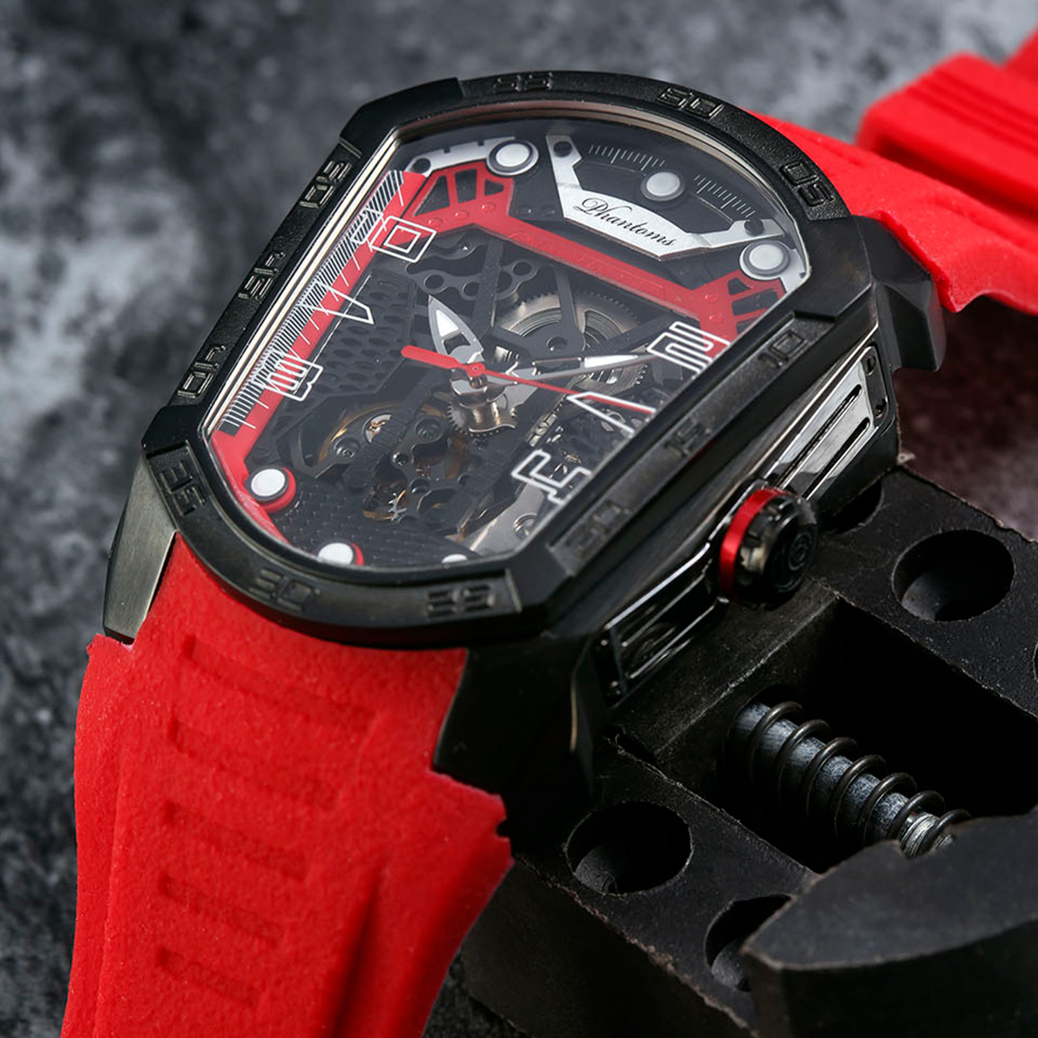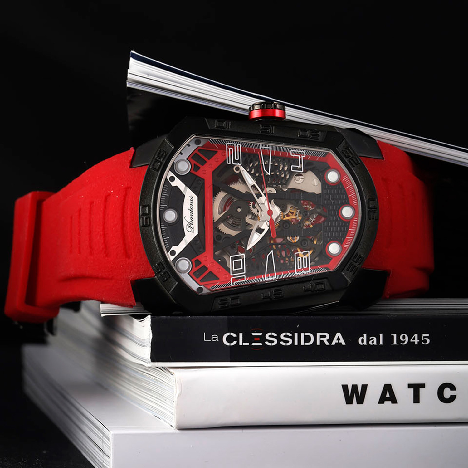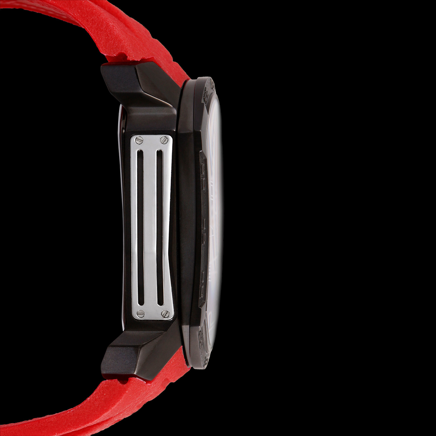 The Blade Series is a mixture of metallic elements, geometry and complexity that acts as a constant reminder to make the best out of every moment. The futuristic design focuses on a heavy armored cyborg sensation, and represents the modern complex human invention with the intention to be the high-end sporty timepiece of our time. Technically complex with a mesmerizing skeleton movement that is uniquely customized with a matte black coating, the watch also features a multi-layered structural highly detailed dial. You can wear a wristwatch, or you can wear a work of art.