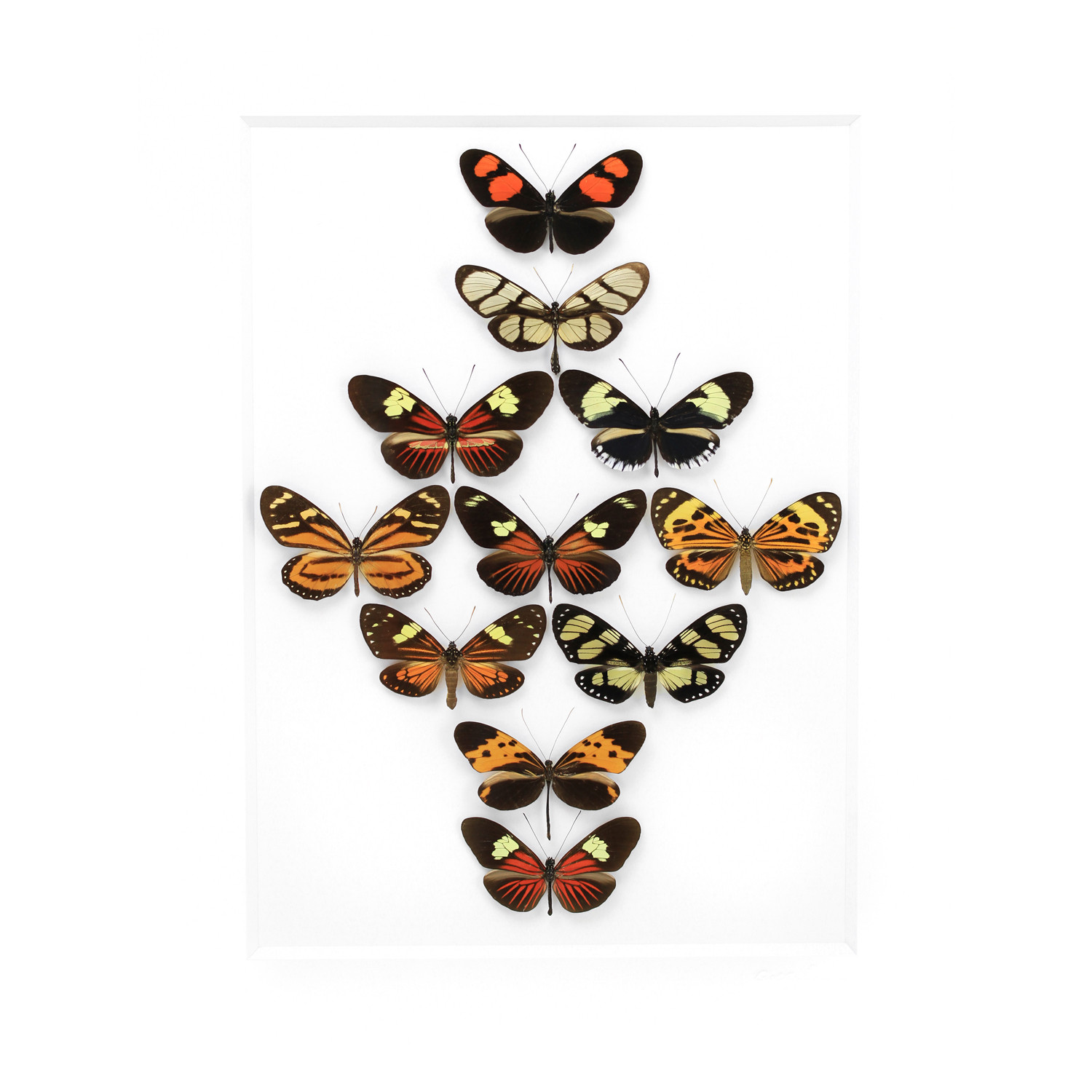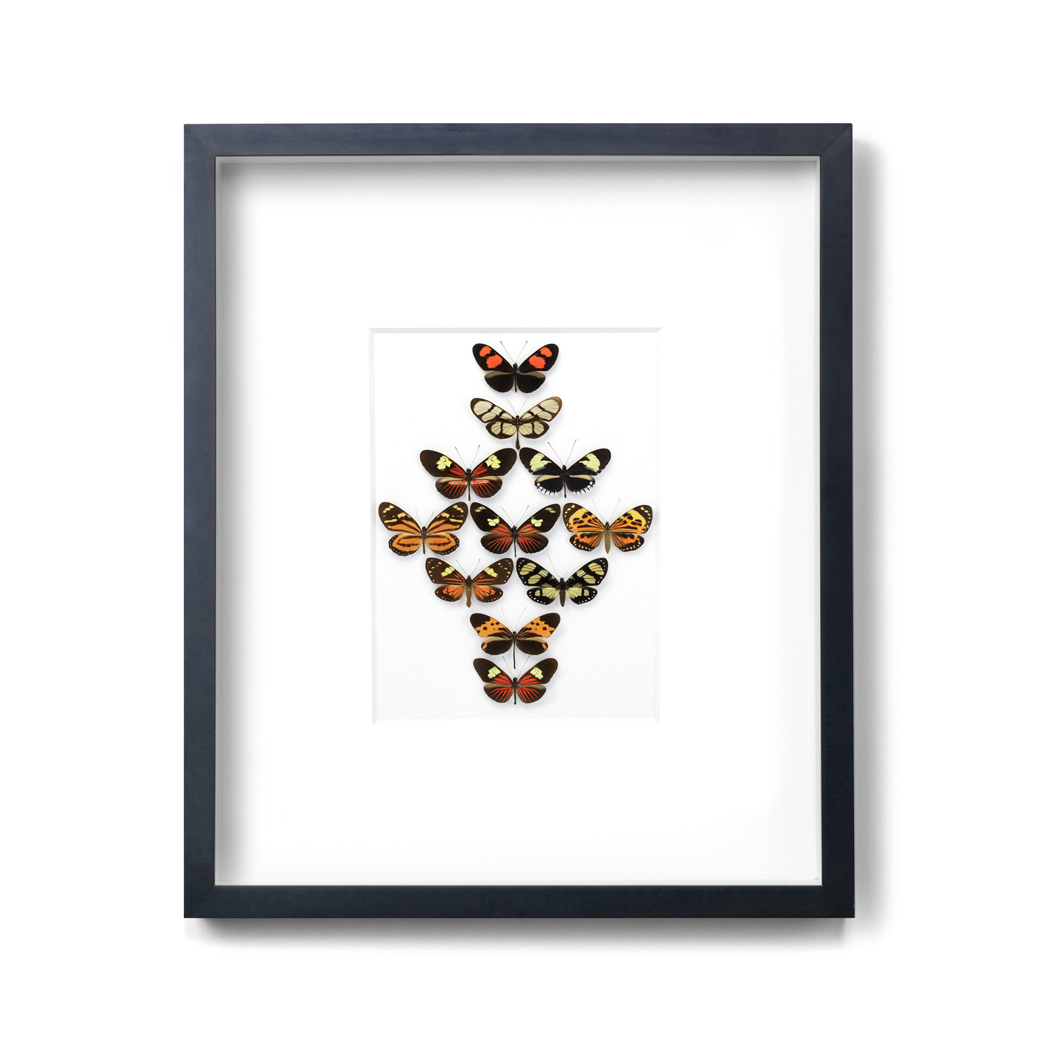 These exceptionally long-winged butterflies are a graceful detail for any wall straight from the design studio of nature. The calico color indicates a poisonous nature to natural predators, but to the human eye, it only seems to serve as a beautiful addition of color to any home palette.