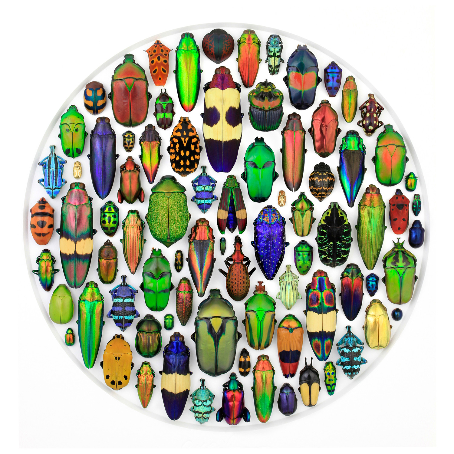 This mosaic is a representation of the stunning hues and diverse shapes and patterns found in the Phylum Arthropoda. With specimens chosen from literally millions of species hailing from every inhabited continent, each mosaic is designed to be as much a tribute to nature’s outrageous diversity as it is a singularly distinctive piece of art.