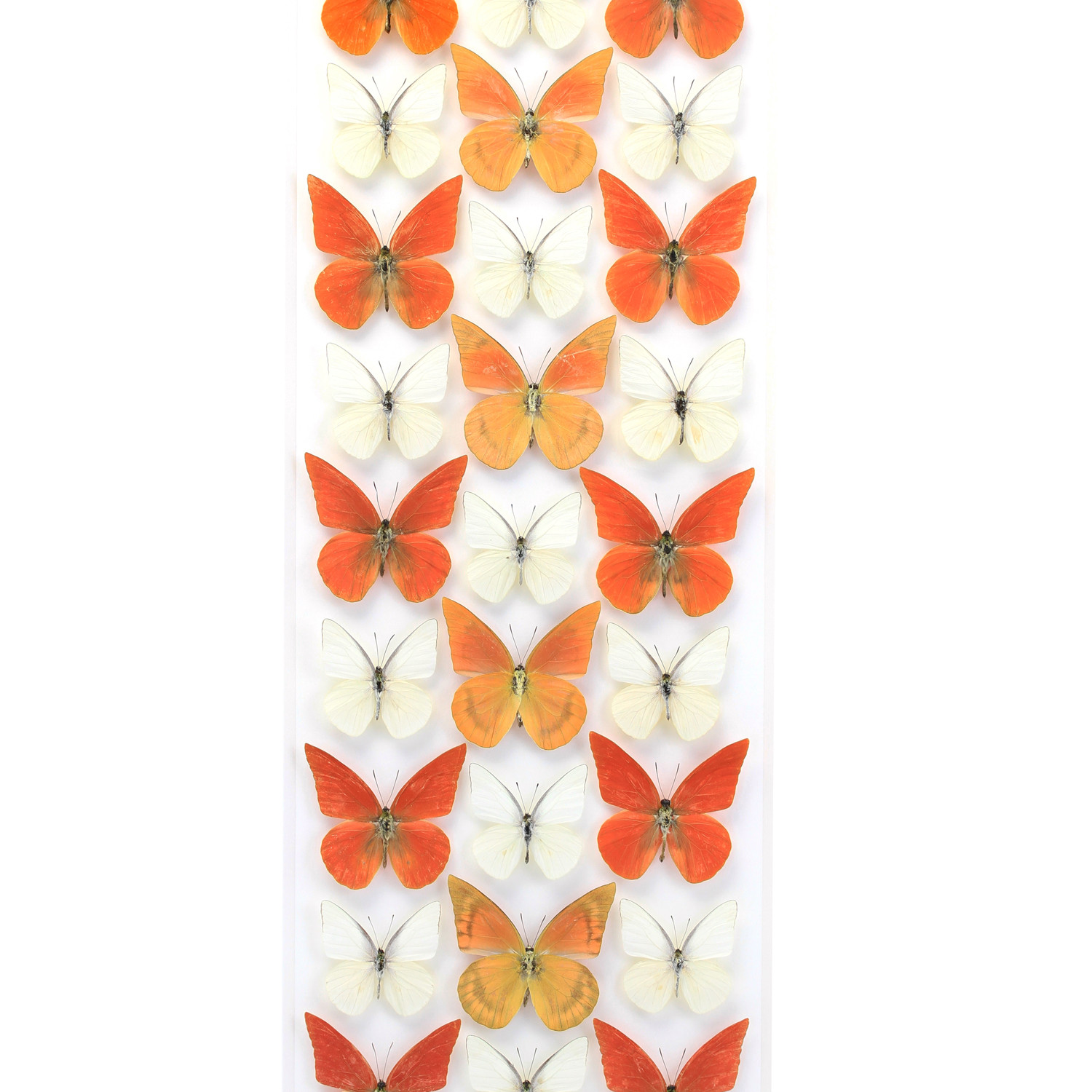 Tangerine Appias butterflies are as ubiquitous in Asia as Monarch butterflies are in North America. They are, however, a much more delicate butterfly with scales that barely dust the exterior of their wings. Both sides are displayed paired with the equally common Albino Appias butterfly from the Philippines.