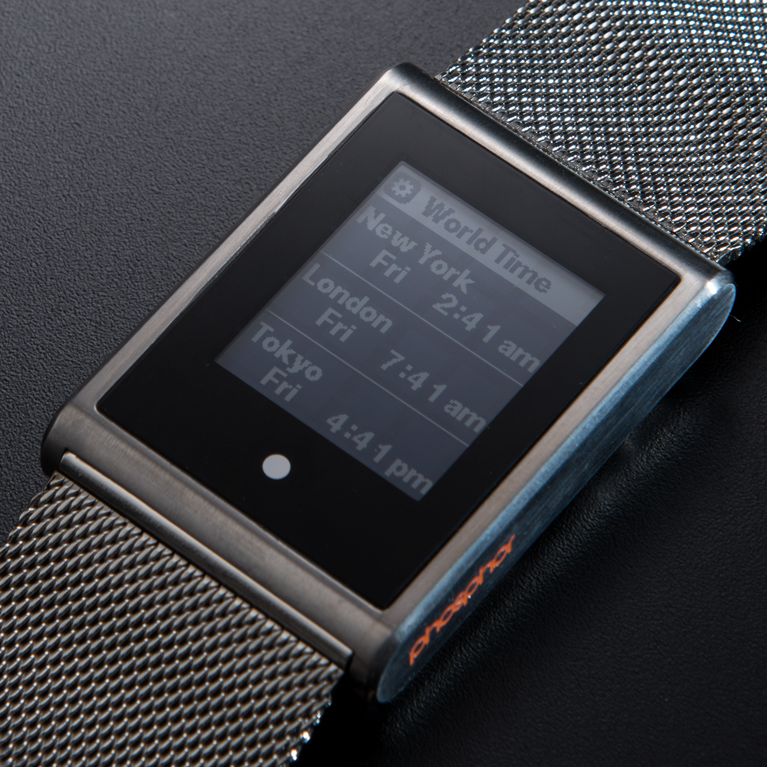One of the most notable features of Touch Time is the ability to select from seven different built-in time displays with a simple swipe of your finger. The display itself can also be inverted, giving you up to 14 different watch dial appearances ranging from oversized digital to analog time dials. Touch Time is also one of the first watches ever that, like your smartphone, allows you to customize the language displayed.