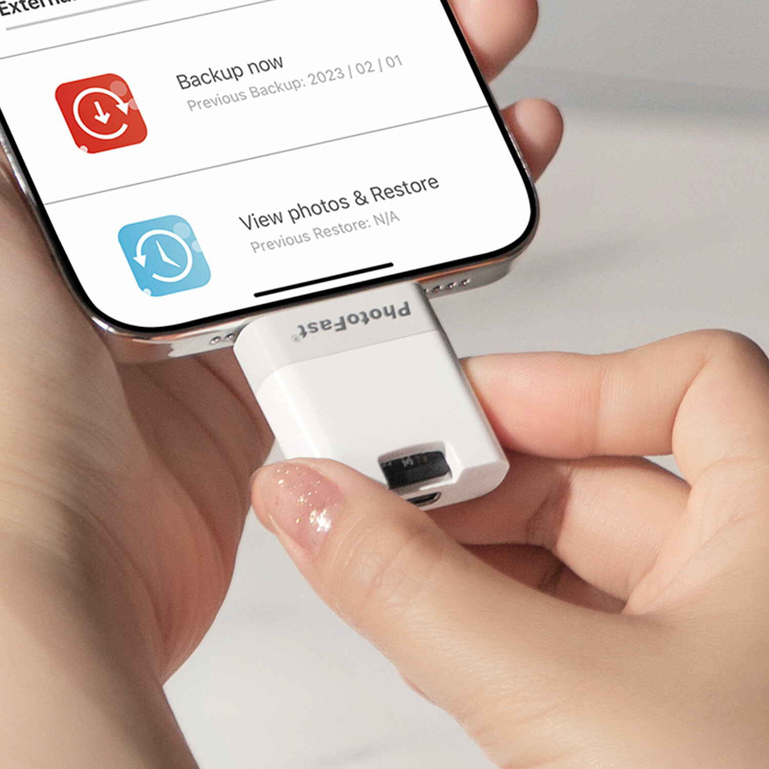 — Install the "PhotoFast One" app from the App Store or Google Play