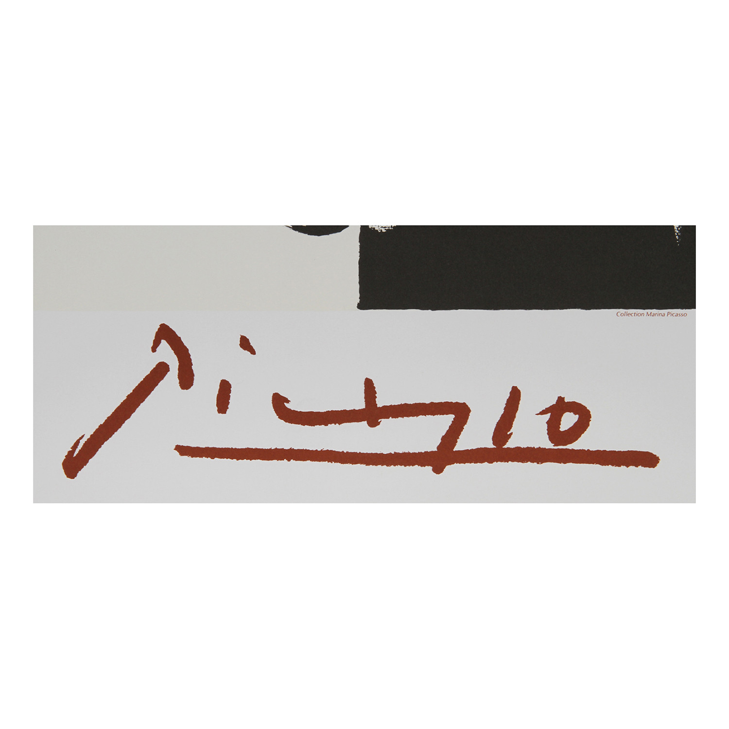 This Pablo Picasso limited edition lithograph poster of Portrait en Deux Parties Noire et Blanche depicts a portrait of a woman divided in black and white. The original drawing this print was created from was painted in 1924. This piece of artwork is from the Marina Picasso estate collection, with Marina being the granddaughter of the great cubist modern master. These lithographs were produced from 1979-1982 under the direction of the chromist Laurent Marcel Salinas. This particular piece is from a limited edition of 1000 printed with an estate-approved signature below the artwork.