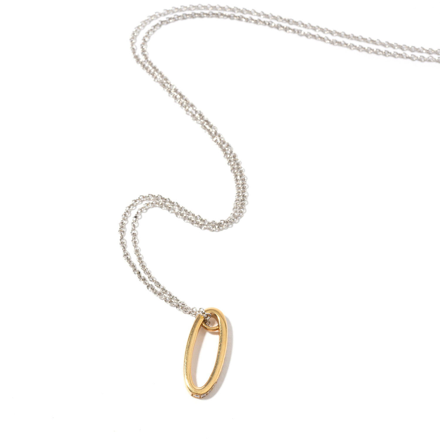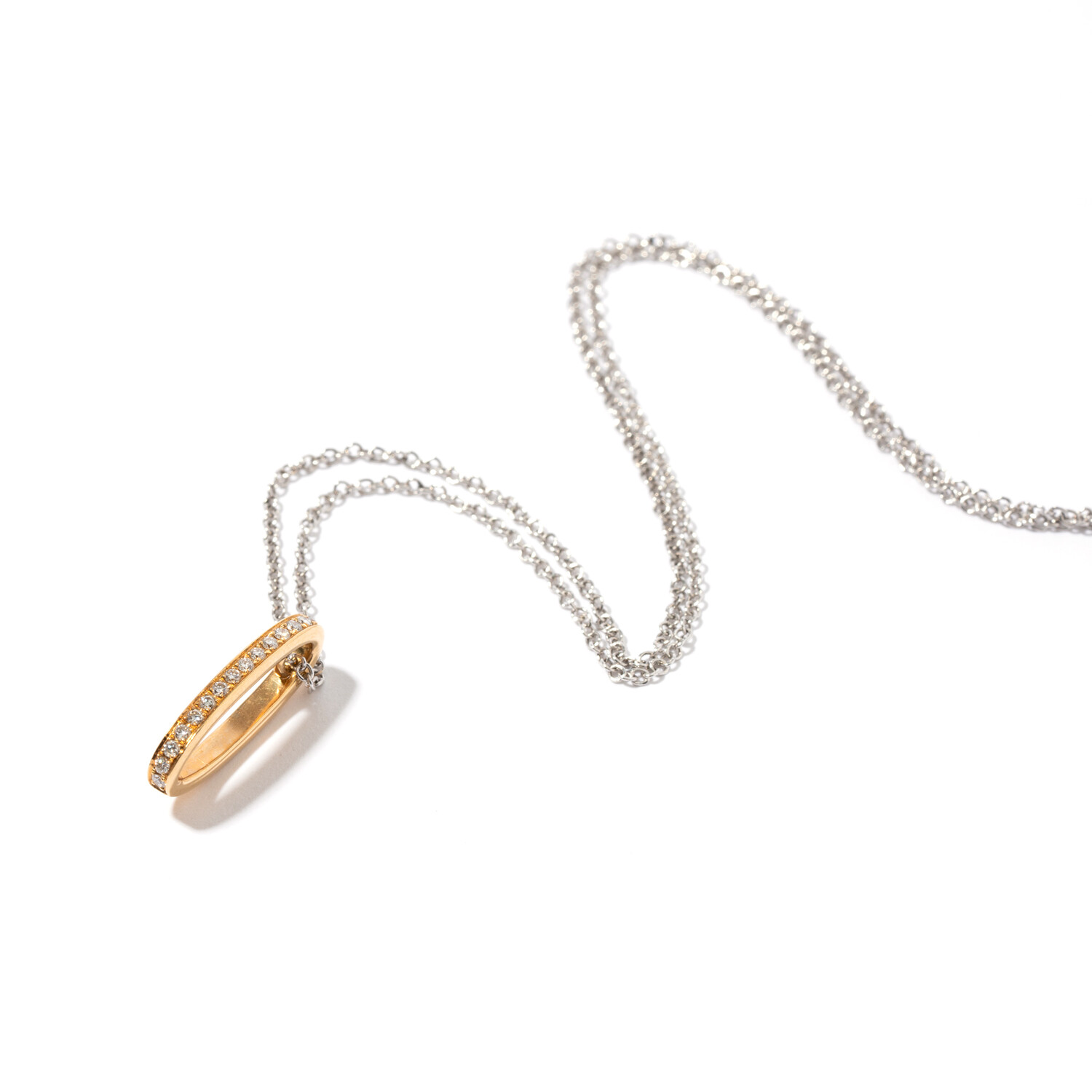 18k White Gold + 18k Rose Gold Diamond Pendant Necklace II // 16" // New