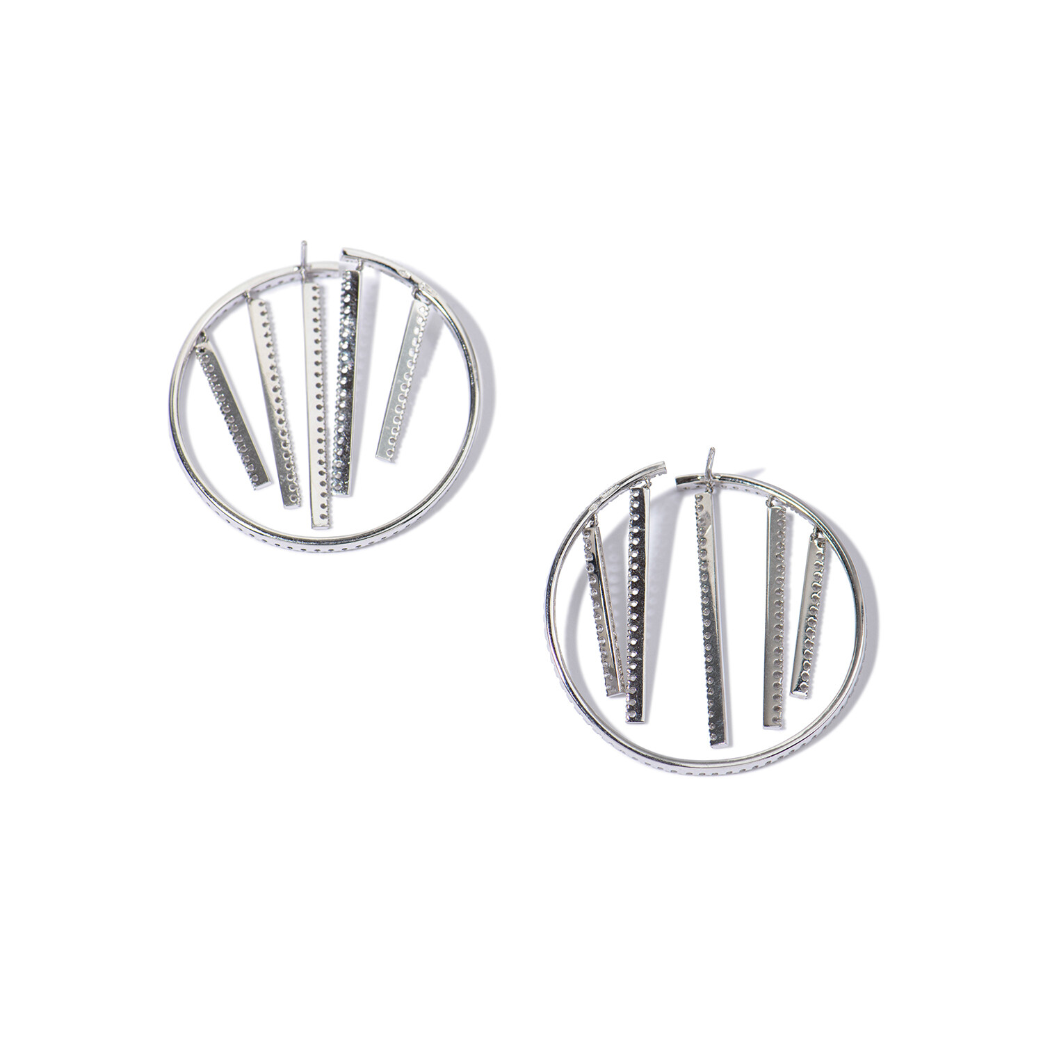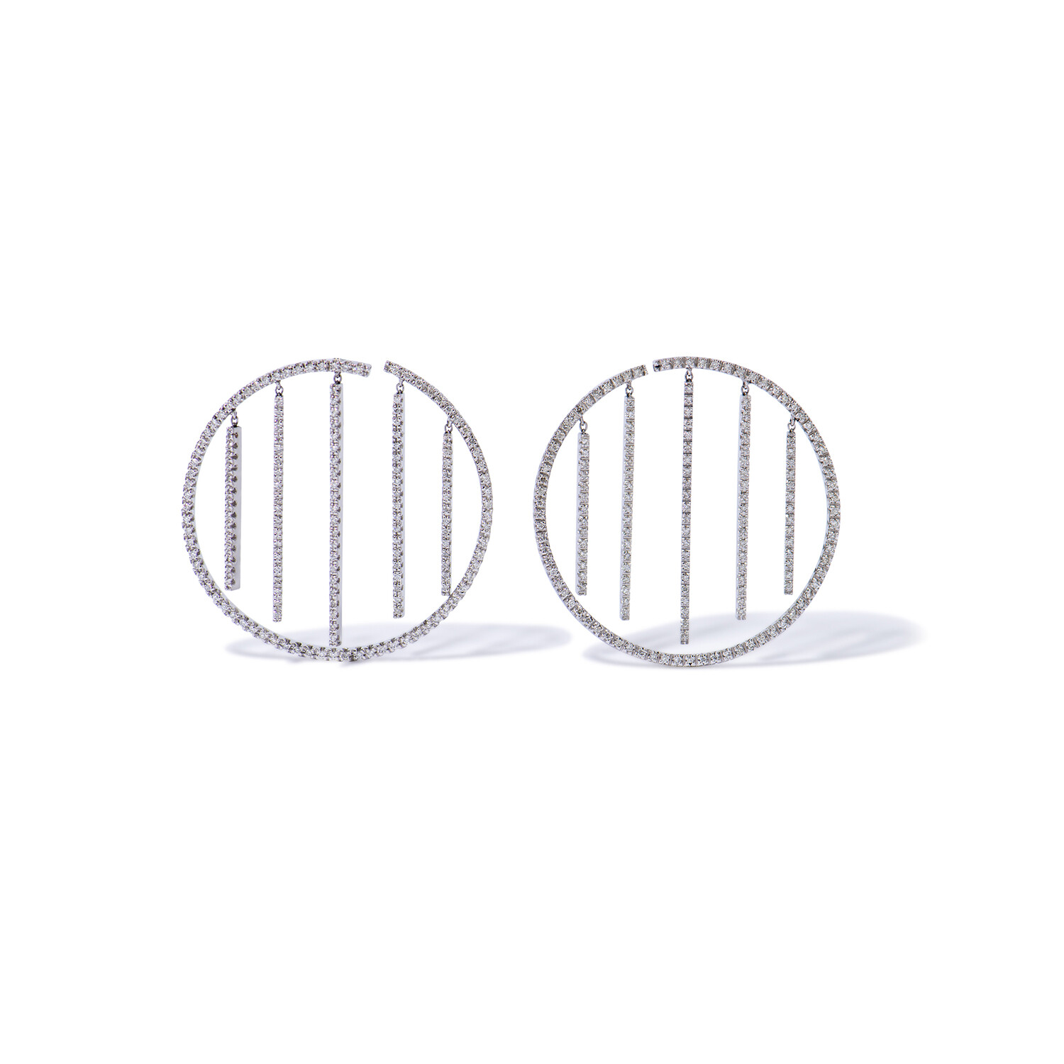 18k White Gold Diamond Dangly Hoop Earrings I // New