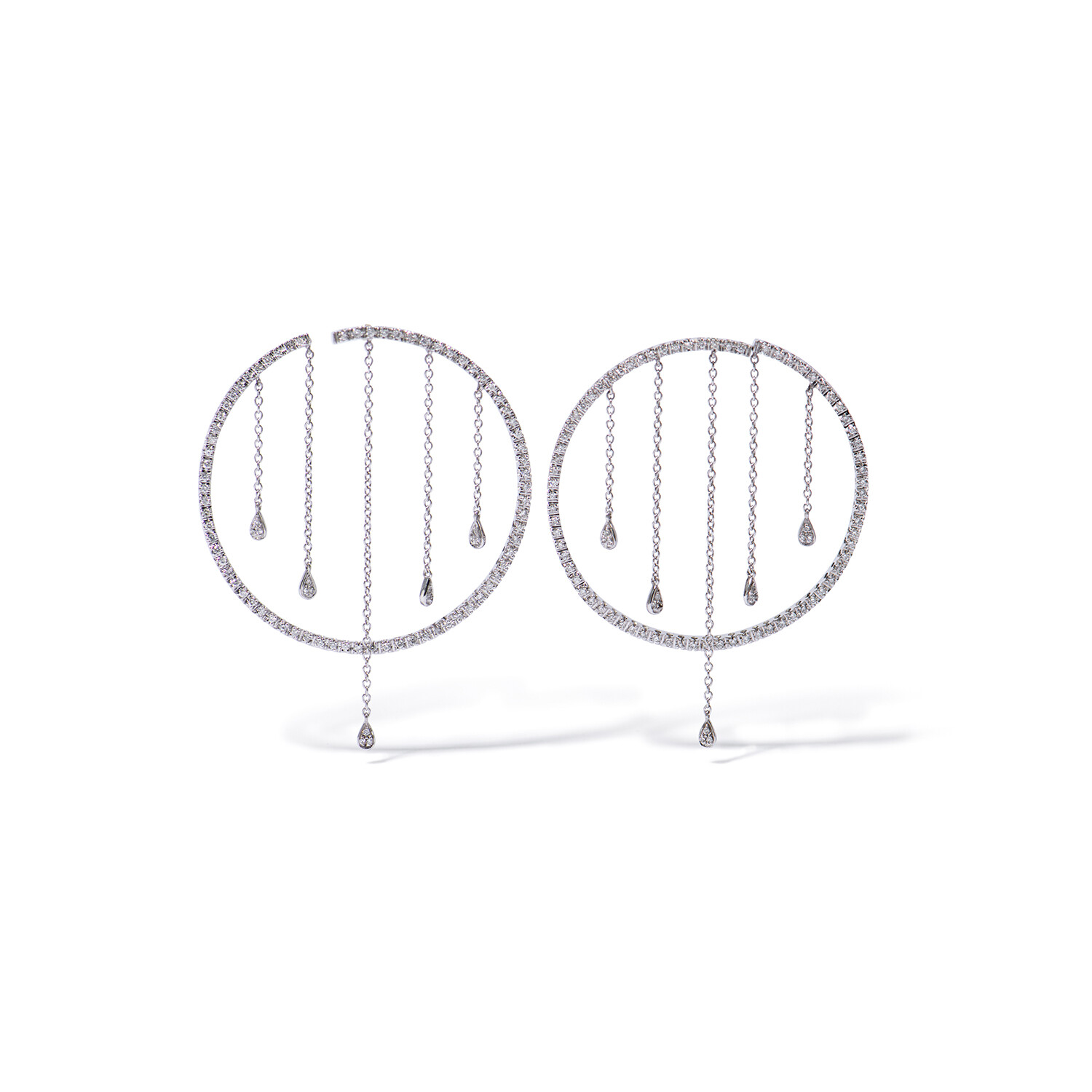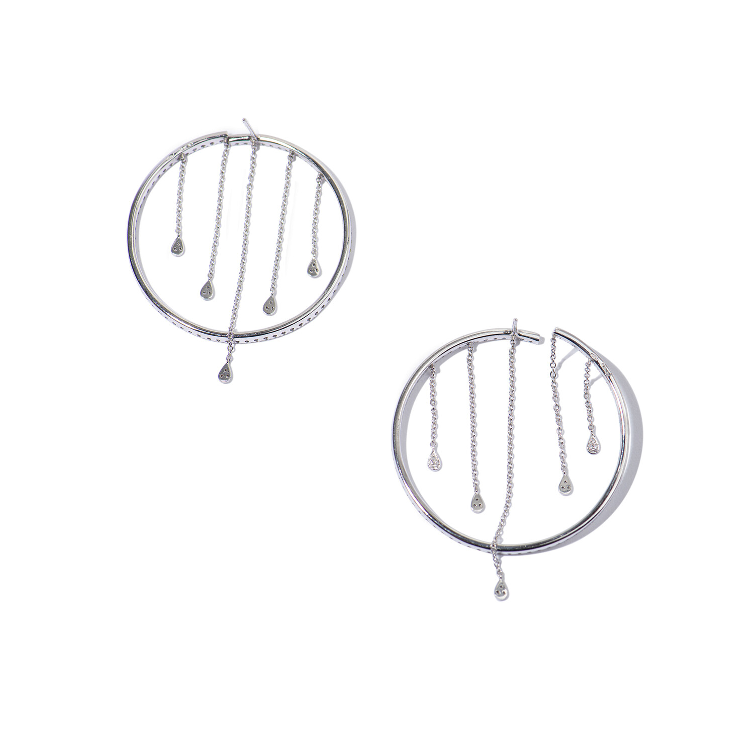 18k White Gold Diamond Dangly Hoop Earrings II // New