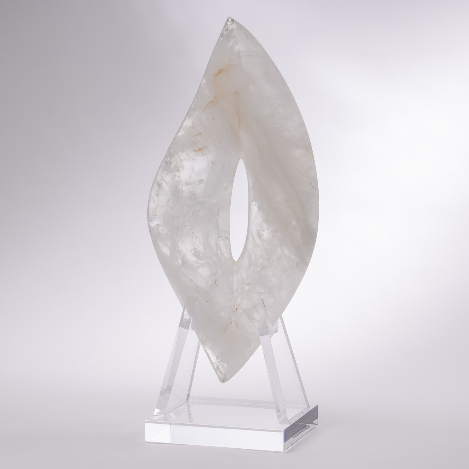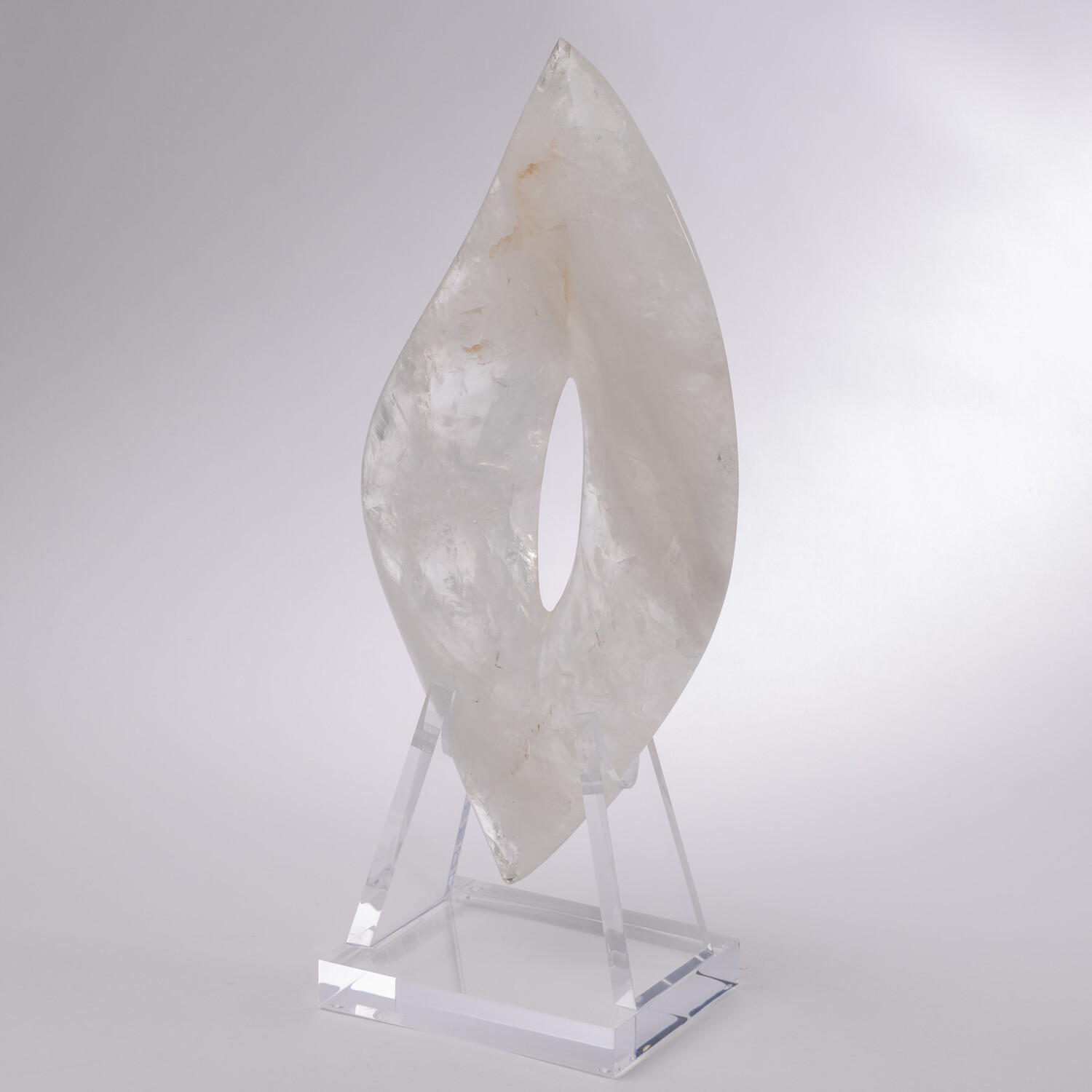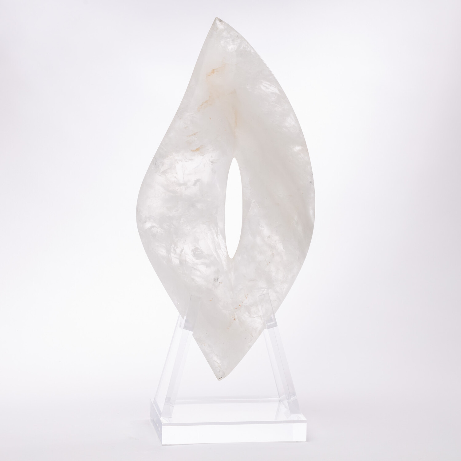 Beautiful Brazilian white quartz sculpture mounted on custom acrylic base.