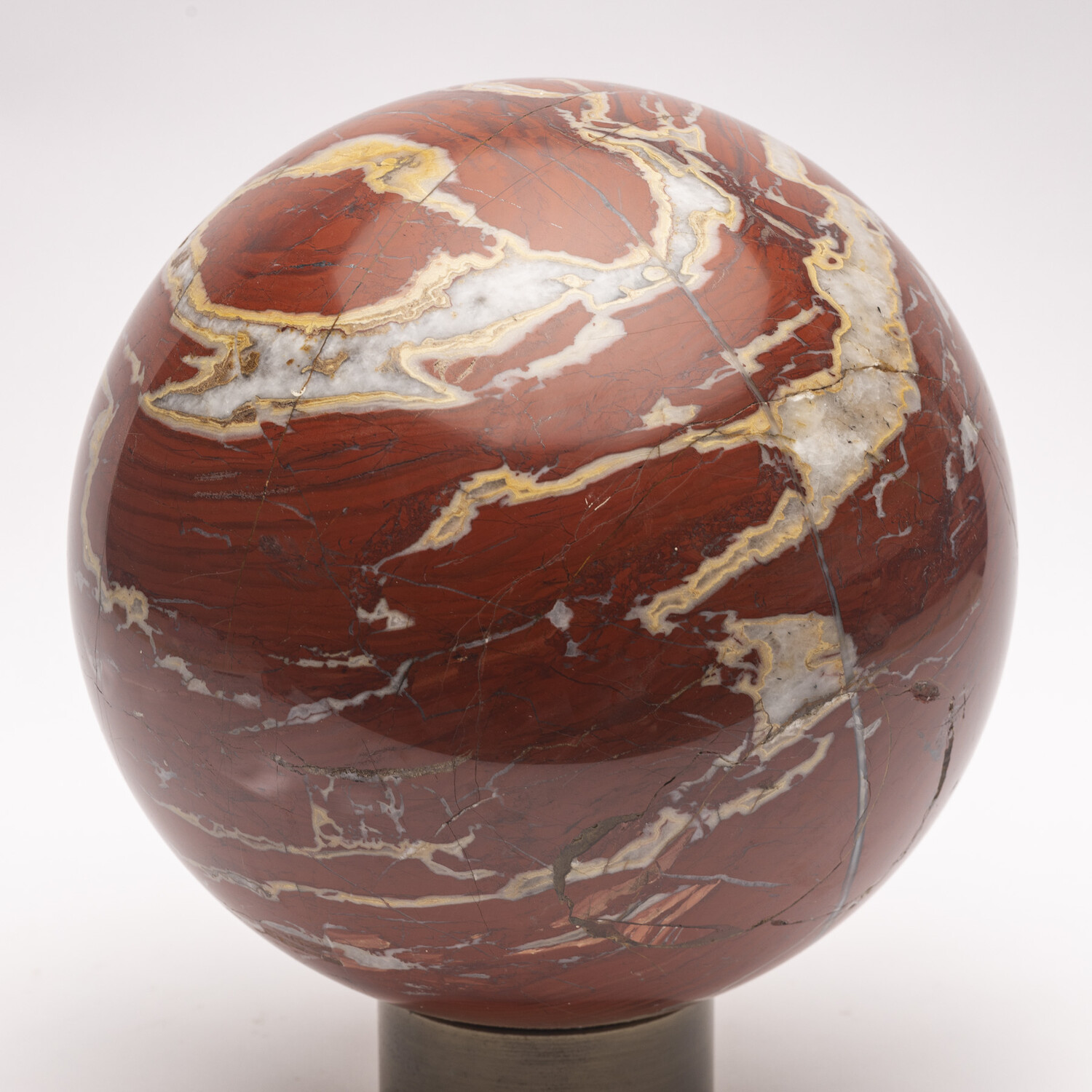 Colorful Red jasper large sphere 10.5" diameter form Madagascar on a metal ring