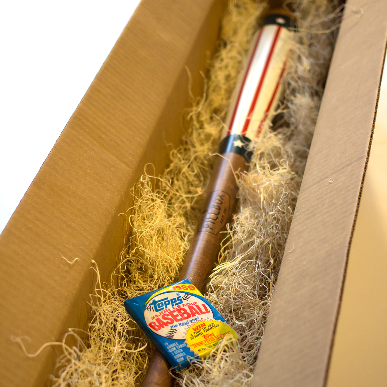 Each bat also comes with a pack of original vintage baseball cards, and a single stick of classic bubblegum, for a complete old-school baseball aesthetic.