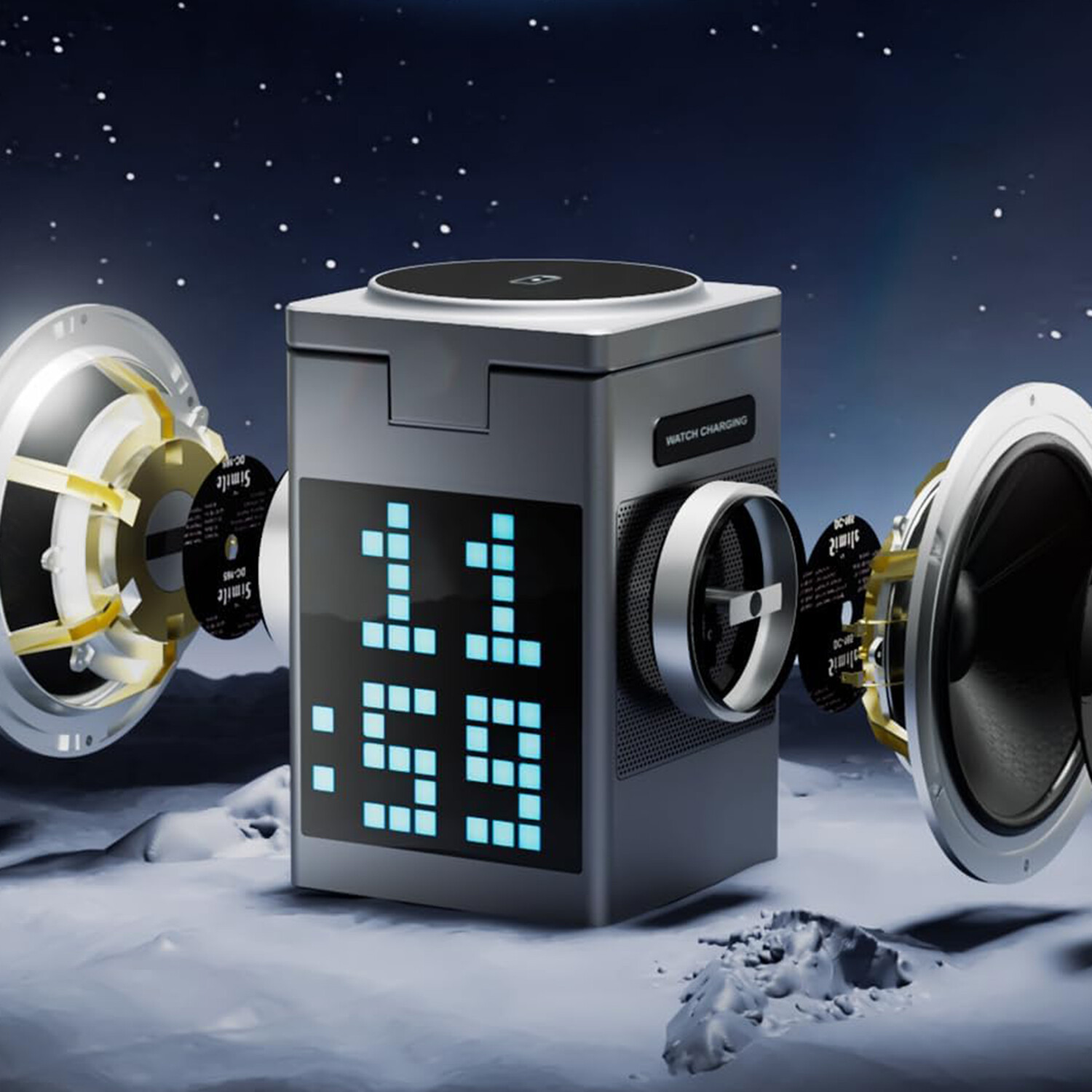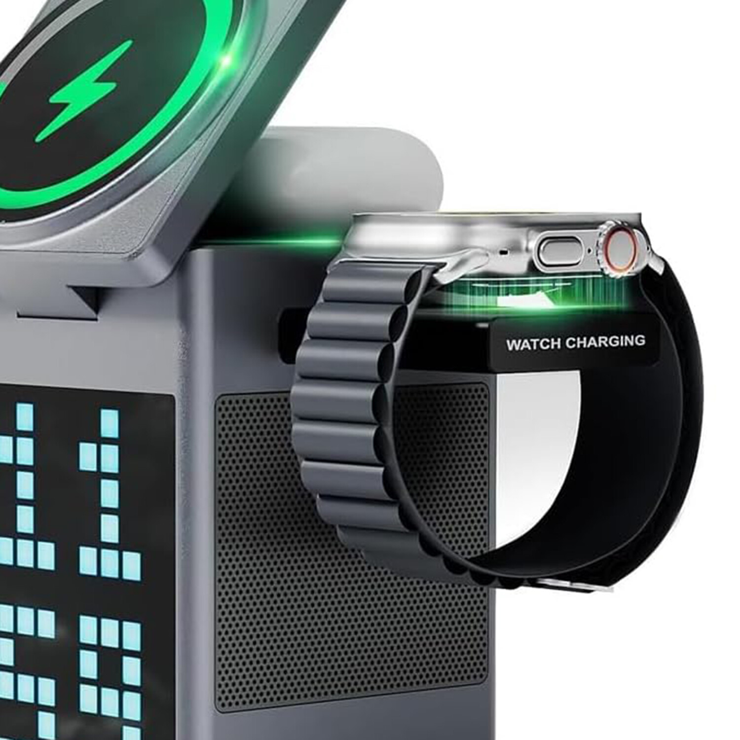 3-in-1 Speaker, Wireless Charger & Alarm Clock w/ Pixel Display