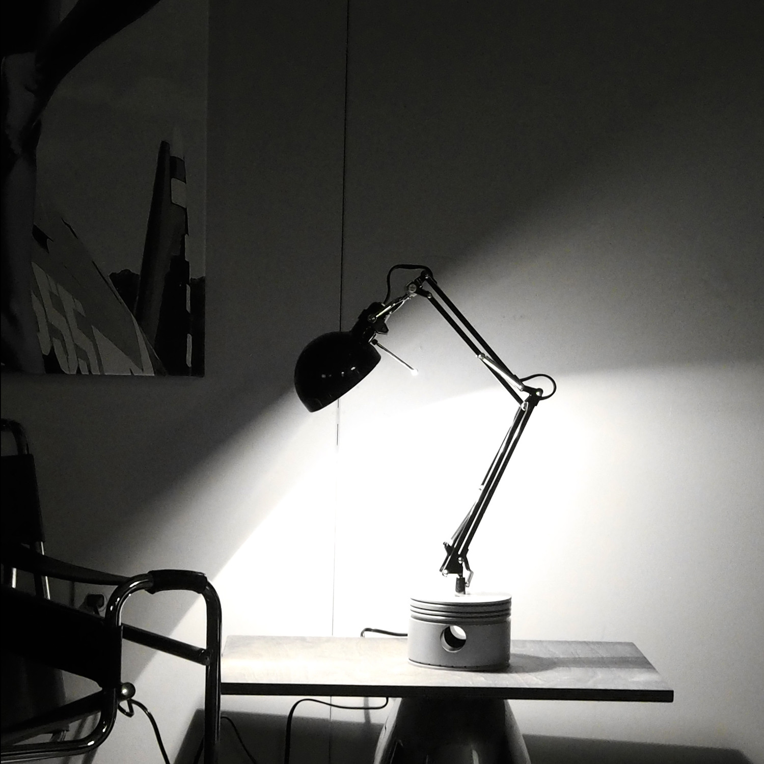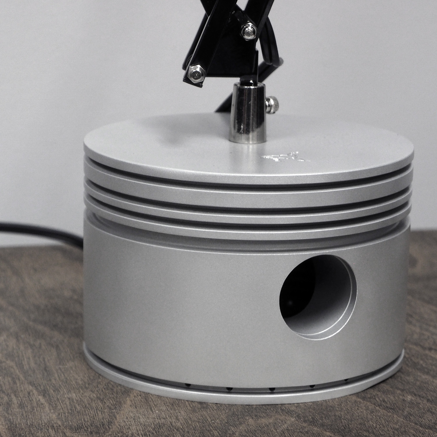 This industrial modern art desk lamp was created using an authentic 1940's WWII Pratt & Whitney R-2800 Double Wasp Radial Engine Piston. The R-2800 is considered one of the premier radial piston engines ever designed and notable for its widespread use in many important American aircraft during and after World War II.
