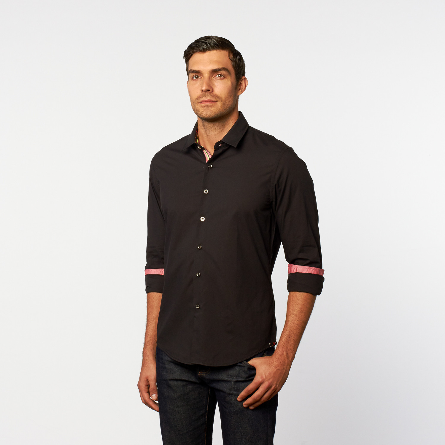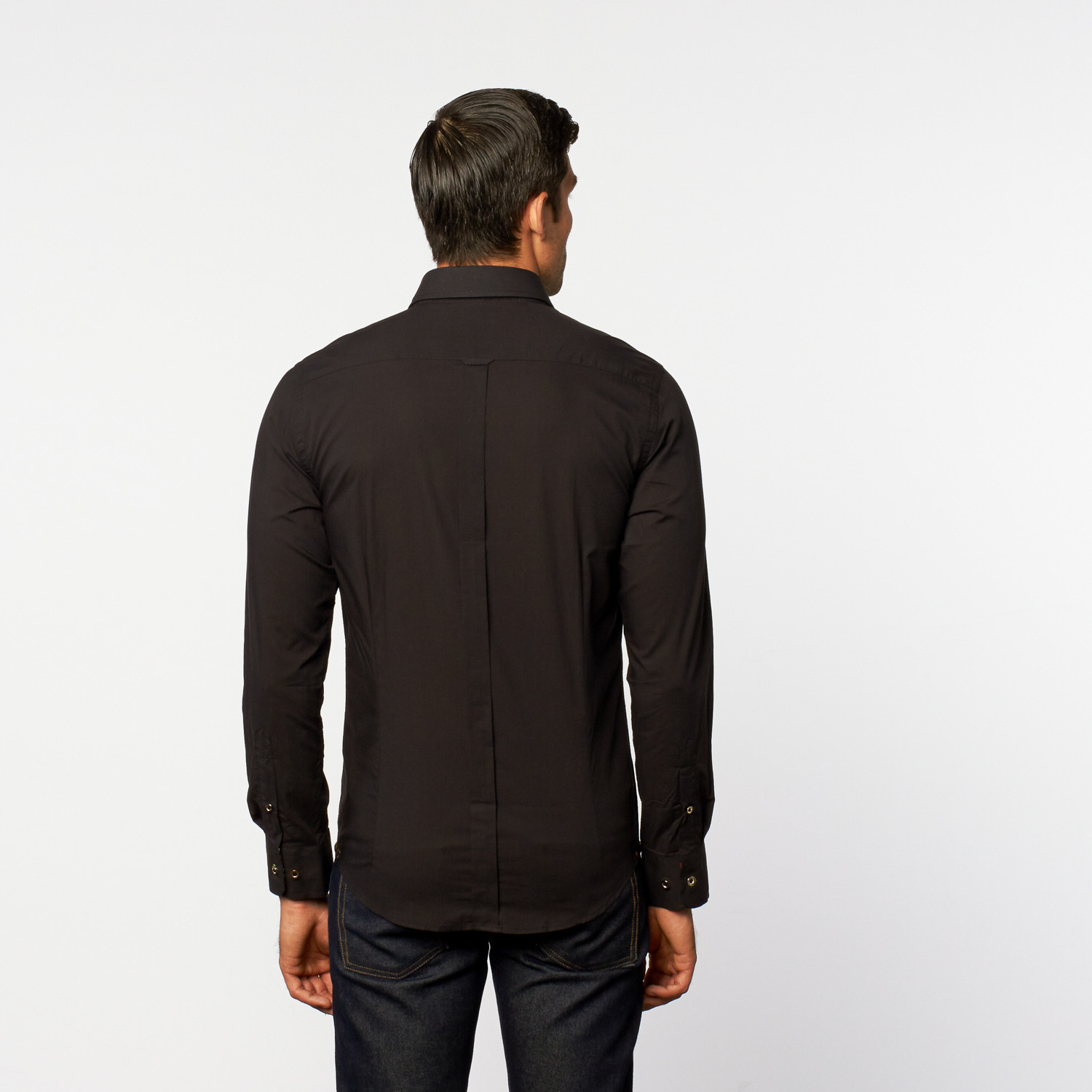 Take your love of fashion to the next level with the Black Button-Up Shirt. This essential is slim at the waist and features contrast trimming. You'll love the details, the body-skimming fit, and especially the attention.