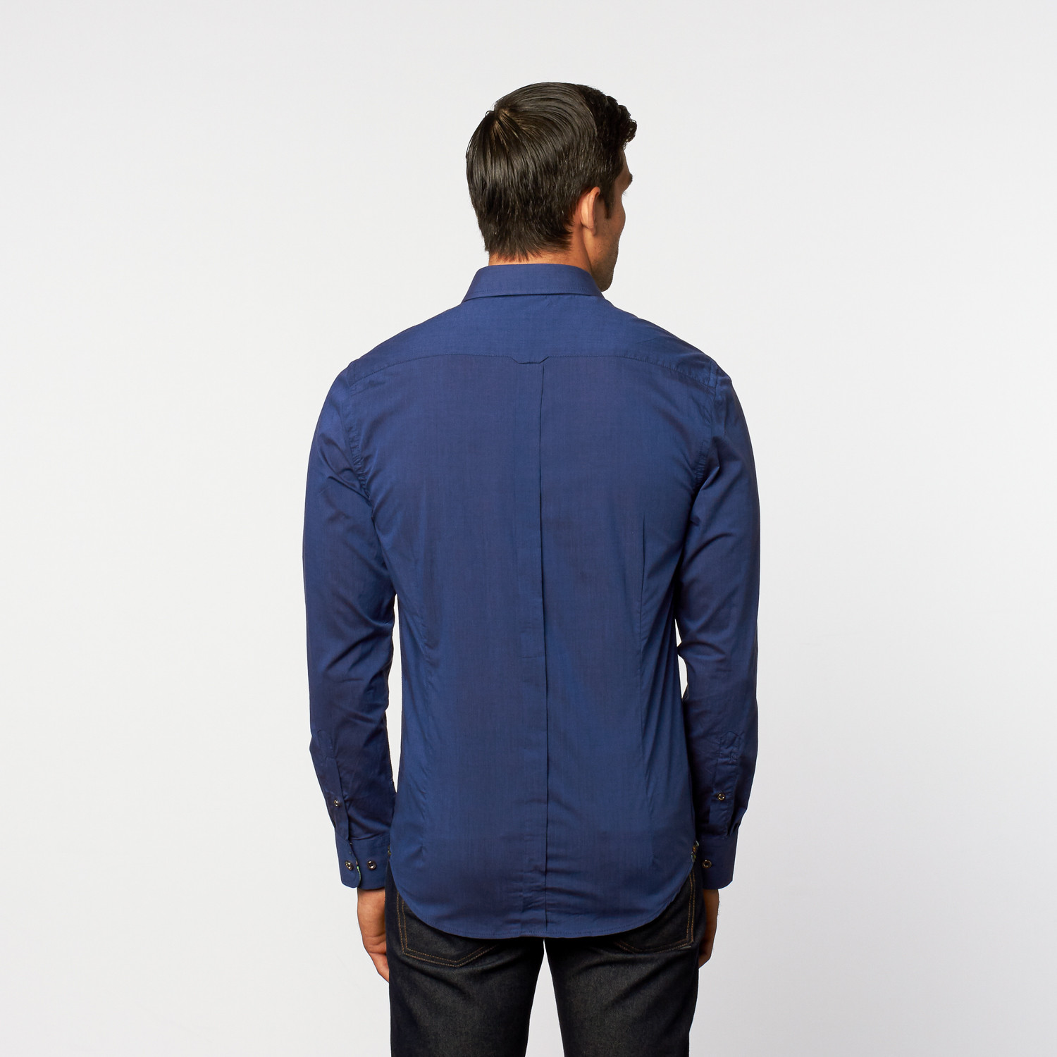 — Contrasting Trim on Inner Cuff, Collar + Placket