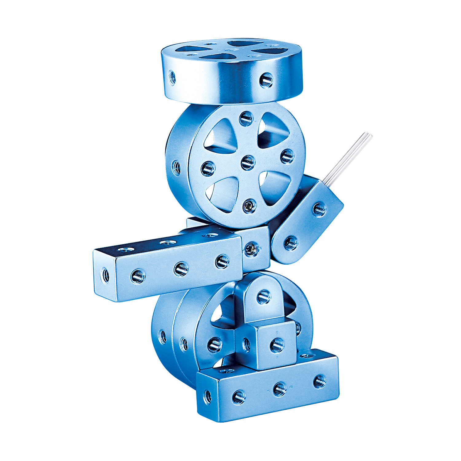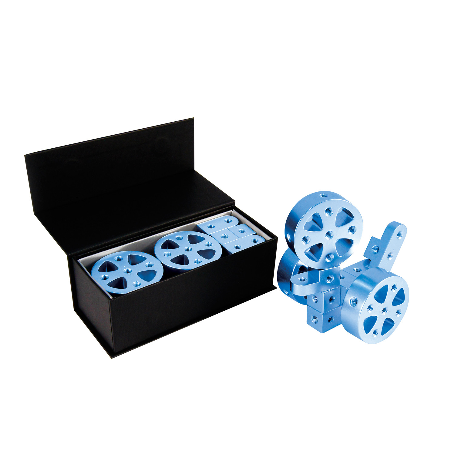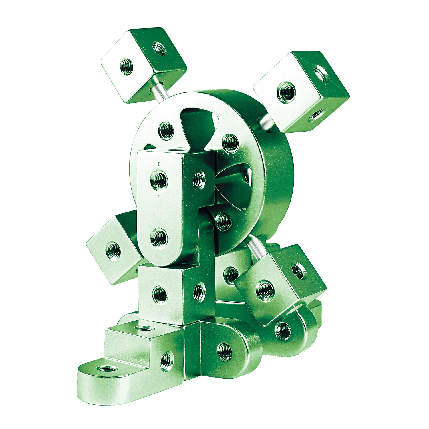 Playable Metal is an open-ended building block set made in strong and durable aluminum alloy, steel and chrome. Not only does the distinct metallic finish provide a unique look and feel, but this ingenious design also makes building true 3-dimensional structures possible with its patented connecting mechanism. This kit by its own could be turned into many mini-human figures or chess models and can be extended to build many more complicated designs.