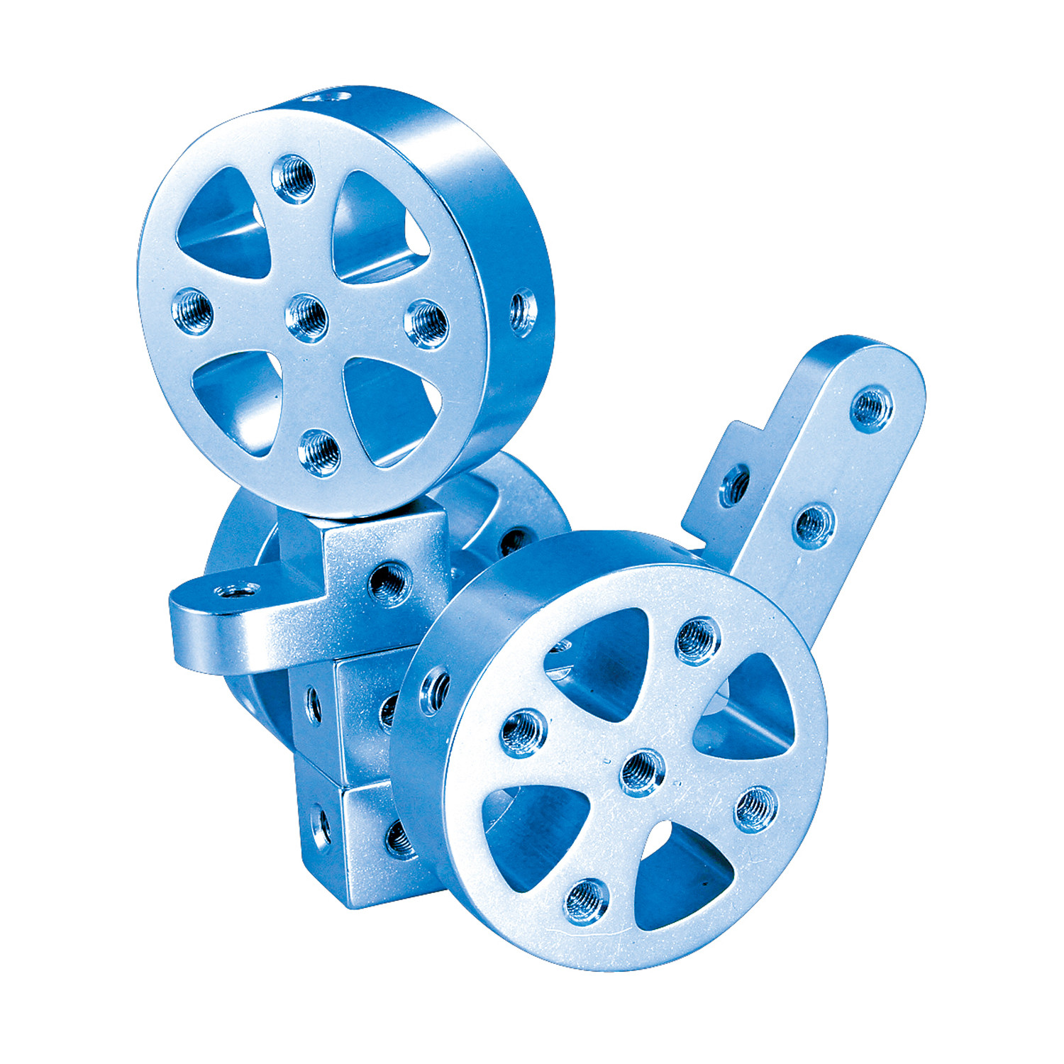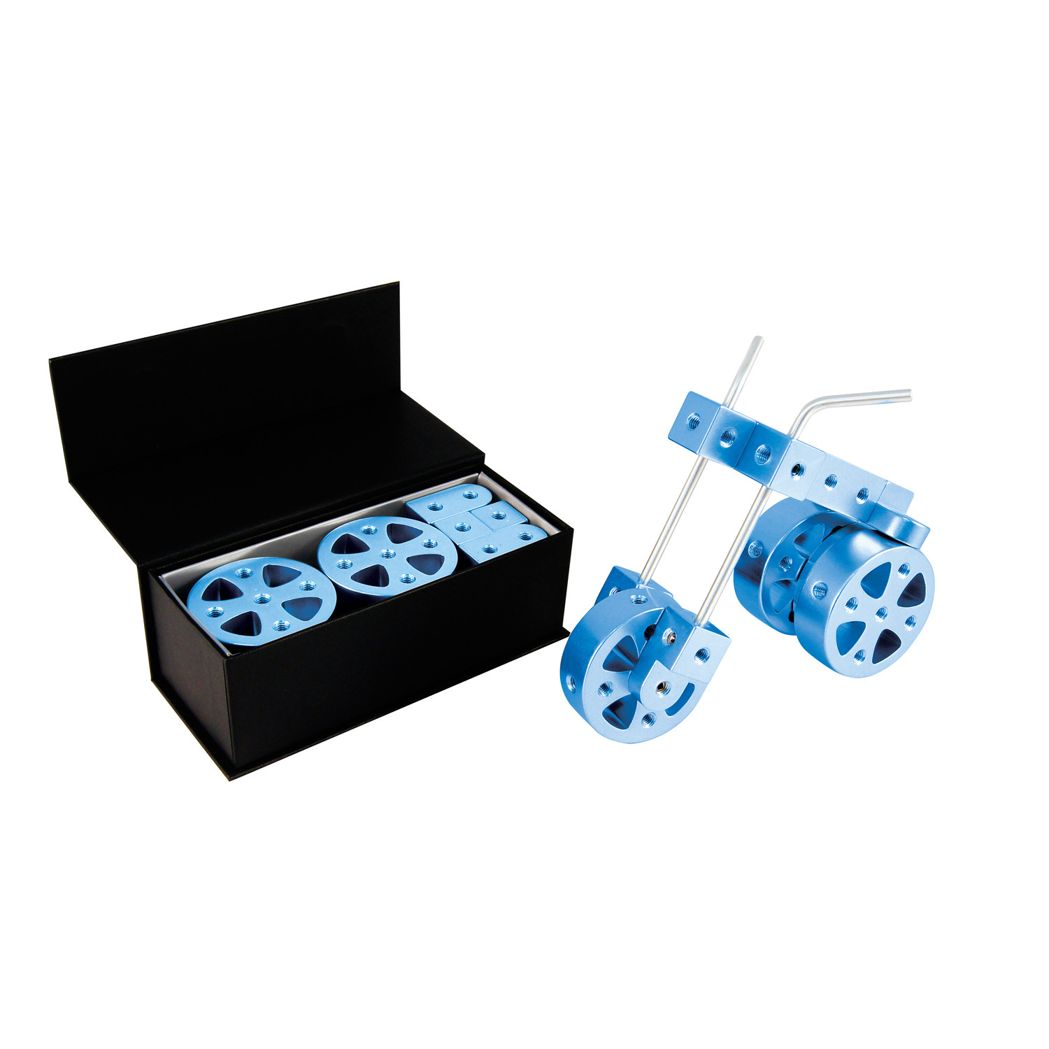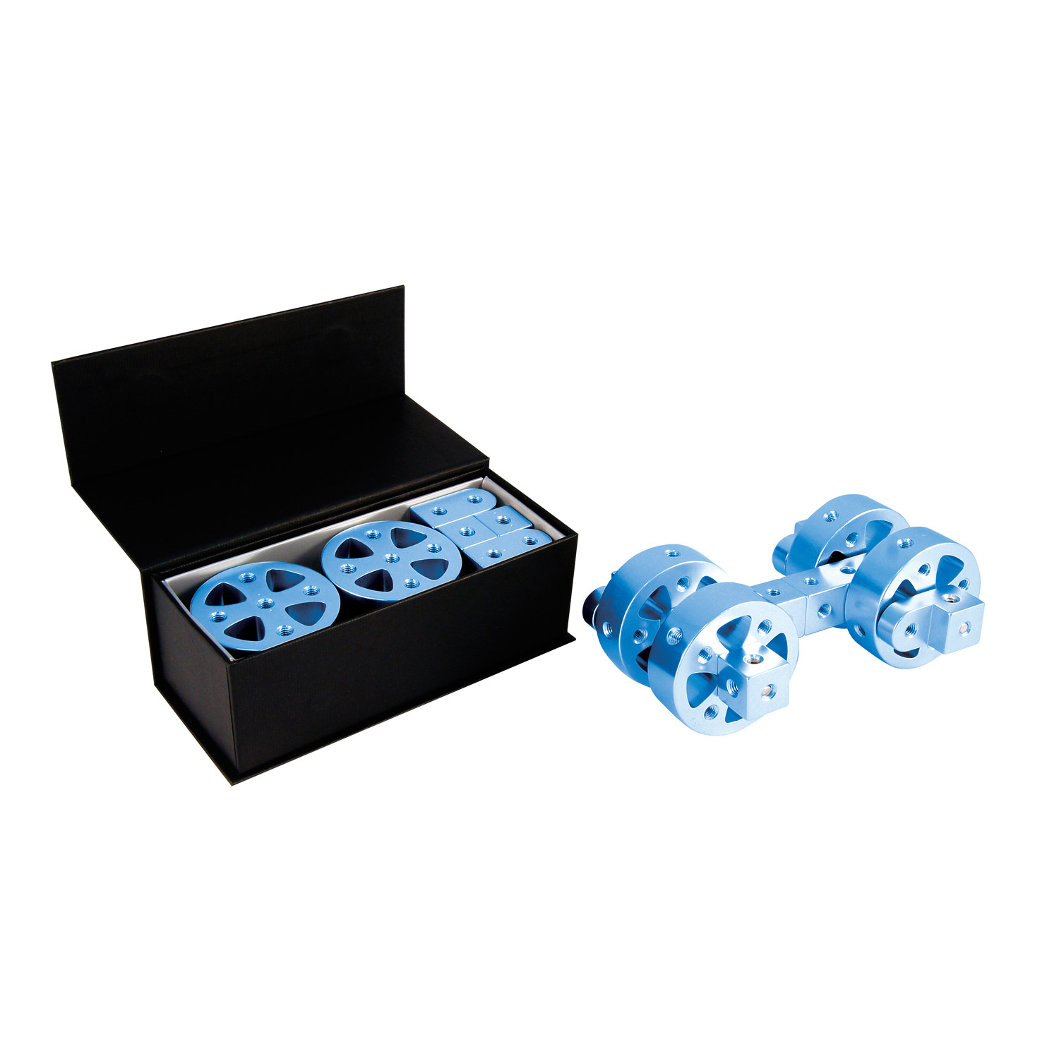 Playable Metal is an open-ended building block set made in strong and durable aluminum alloy, steel and chrome. Not only does the distinct metallic finish provide a unique look and feel, but this ingenious design also makes building true 3-dimensional structures possible with its patented connecting mechanism. This kit by its own could be turned into many mini-human figures or chess models and can be extended to build many more complicated designs.