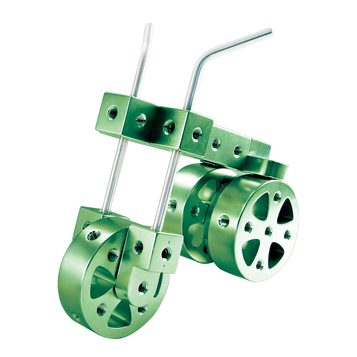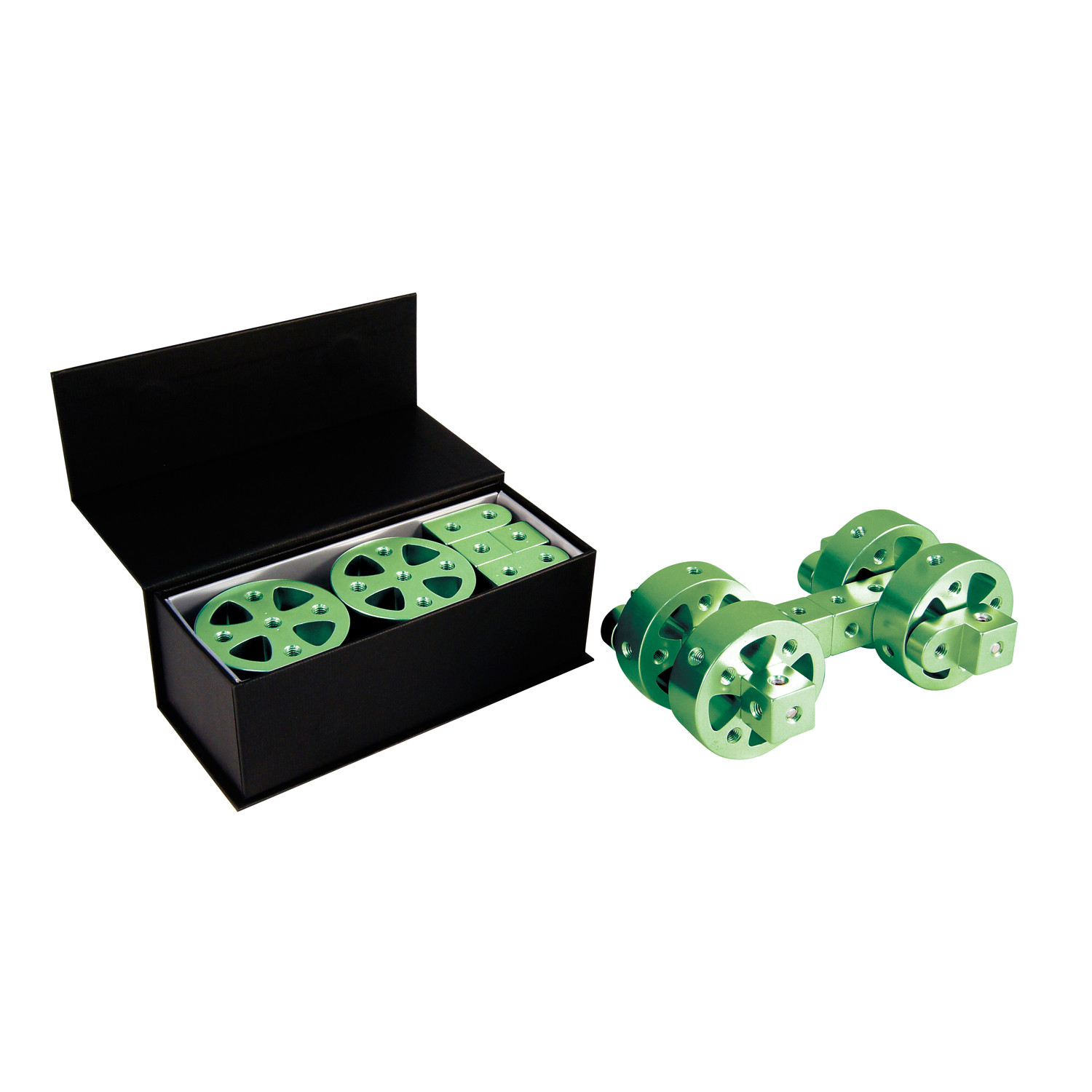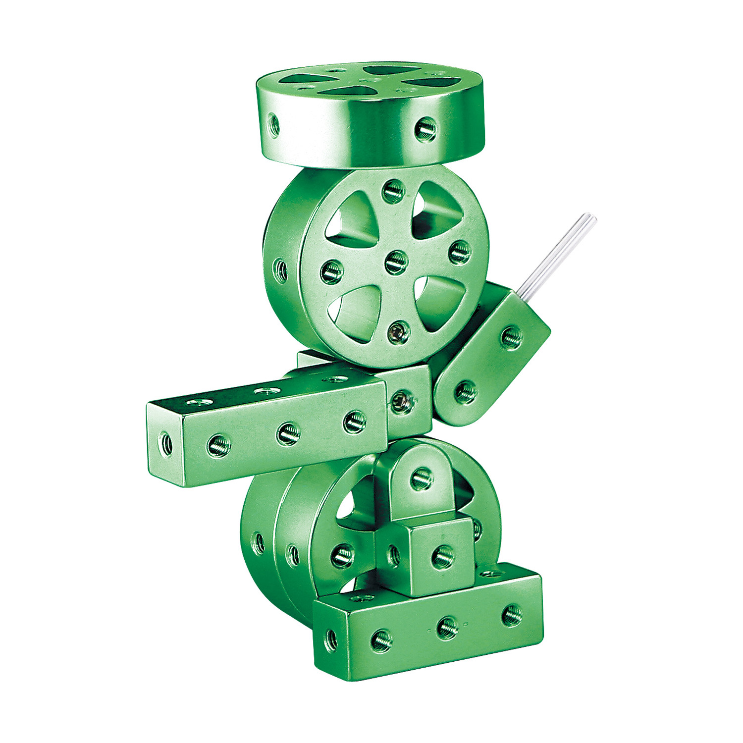 Playable Metal is an open-ended building block set made in strong and durable aluminum alloy, steel and chrome. Not only does the distinct metallic finish provide a unique look and feel, but this ingenious design also makes building true 3-dimensional structures possible with its patented connecting mechanism. This kit by its own could be turned into many mini-human figures or chess models and can be extended to build many more complicated designs.