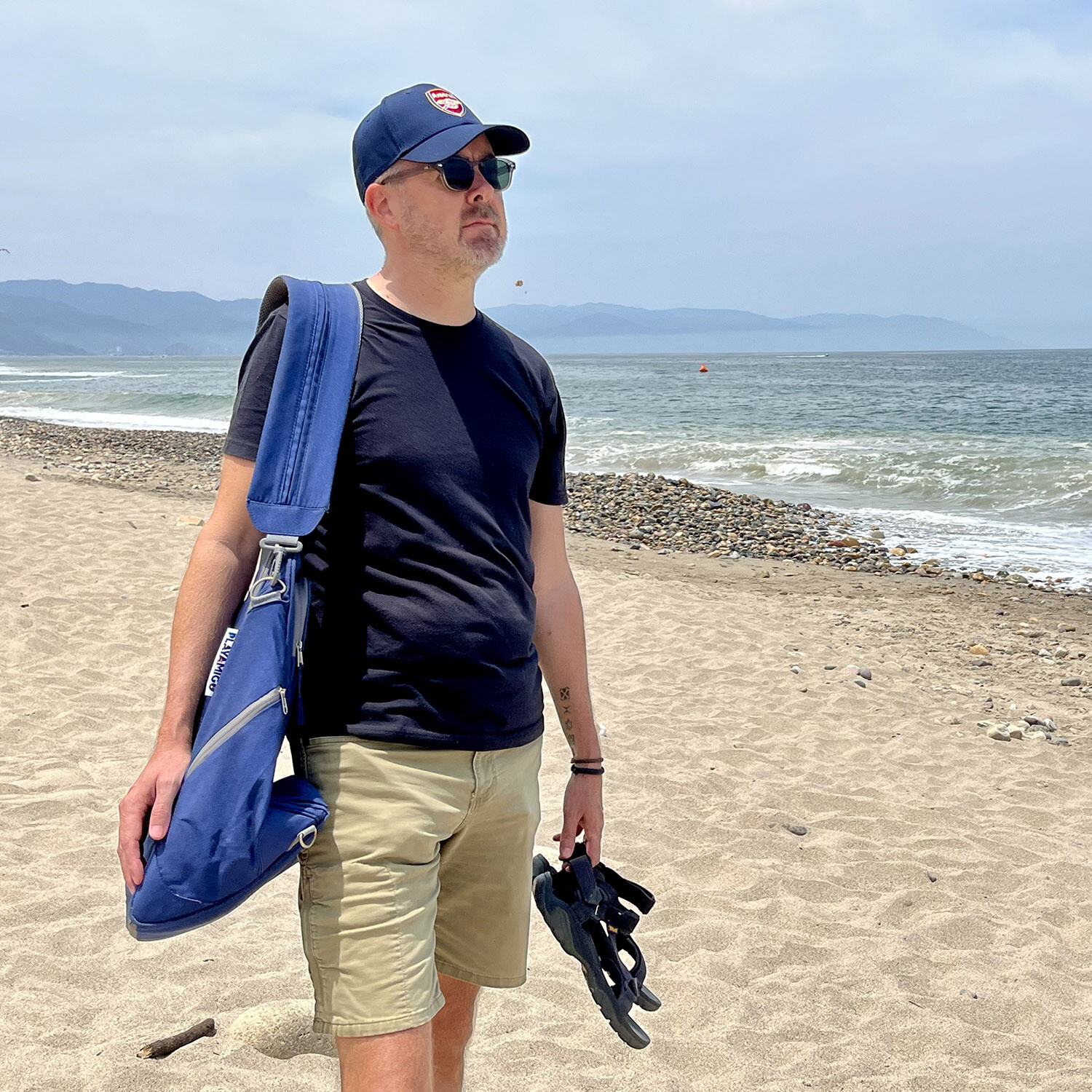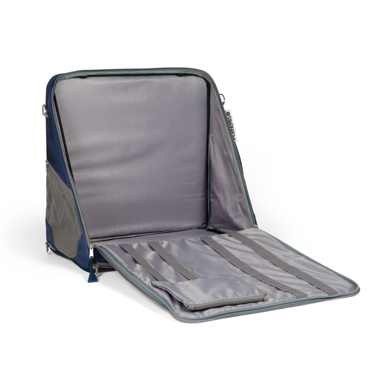 The Playamigo measures 18 inches wide, 17 inches tall, and 10 inches deep, weighing just 4.8 pounds with a 25-liter carrying capacity. It conveniently collapses to under 4 inches thick for easy storage or packing in a suitcase for your trips.