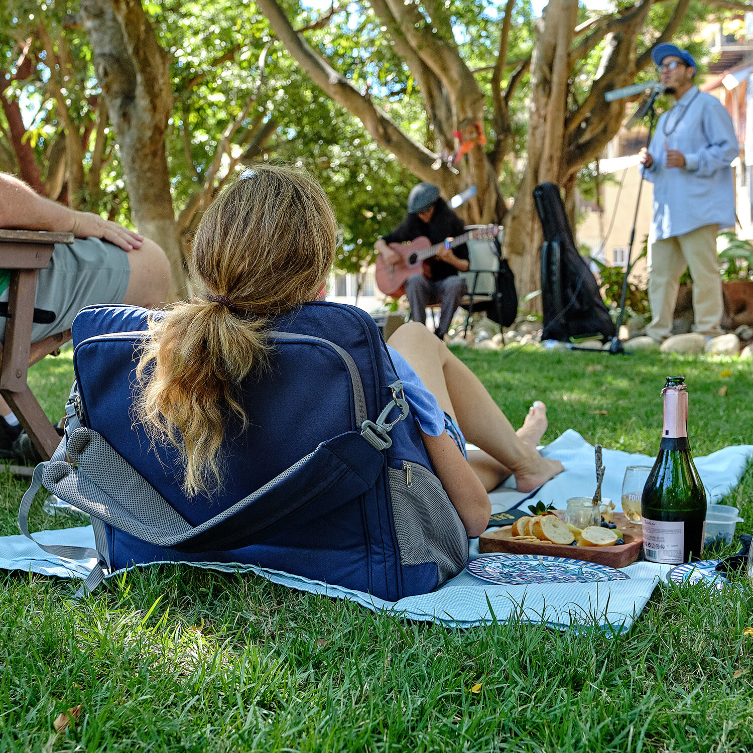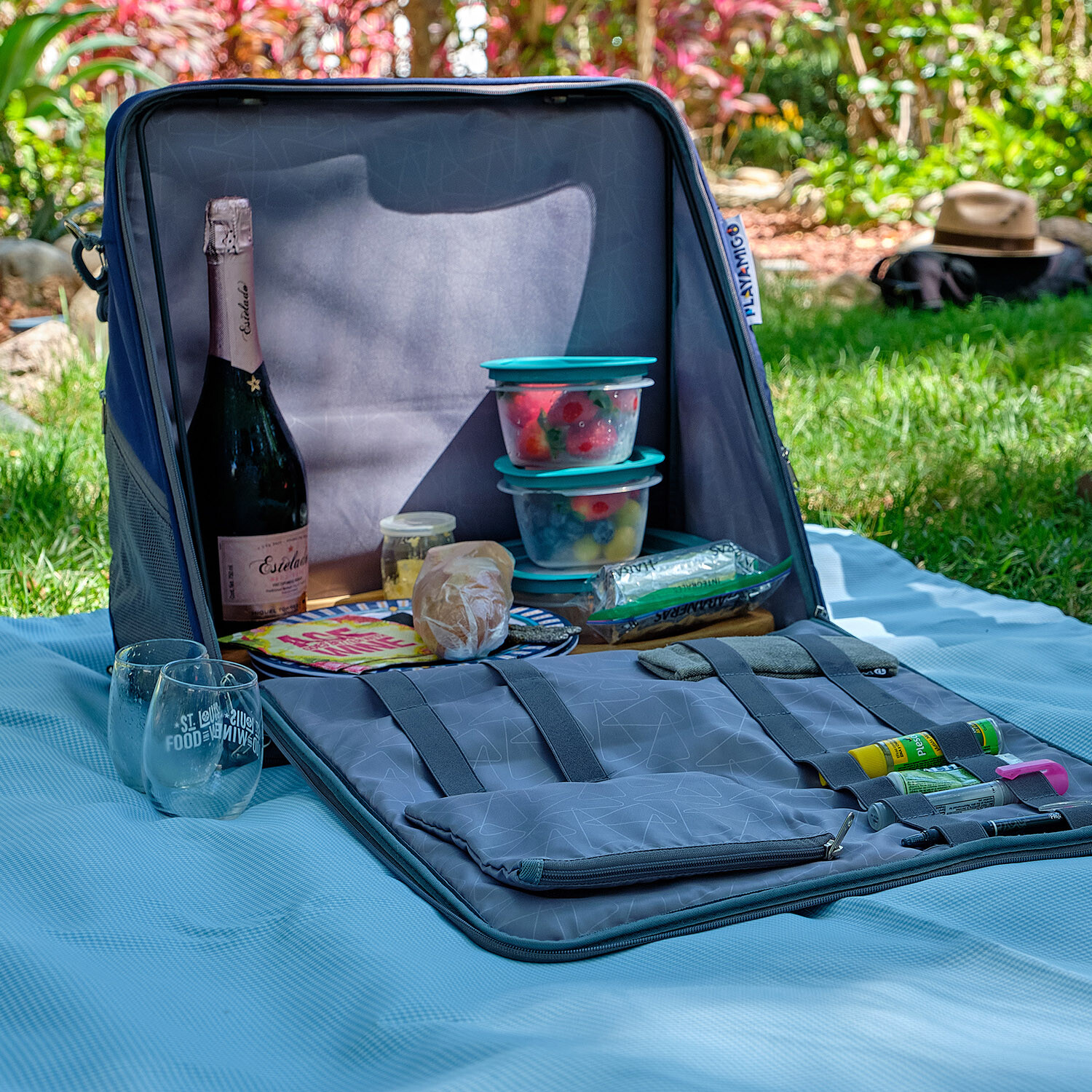 The unique wedge-shaped design features an internal frame for structural support while remaining sleek and lightweight, making it easy to carry and maneuver. The Playamigo can hold everything you need for your outing – from a picnic blanket and beach towel to a beverage cooler, snacks, sunscreen, bug repellent, and even your favorite book.