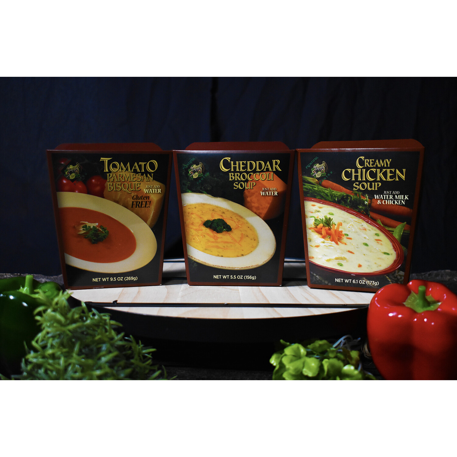 Just add water, milk and chicken! All the flavor and body in a shelf sturdy product that you can keep stocked up for anytime you need a quick meal that’s easy for your family to make! Serves 6! A wonderful soup that’s restaurant quality. High quality Ingredients make this gourmet soup something you will want to cook all year round.