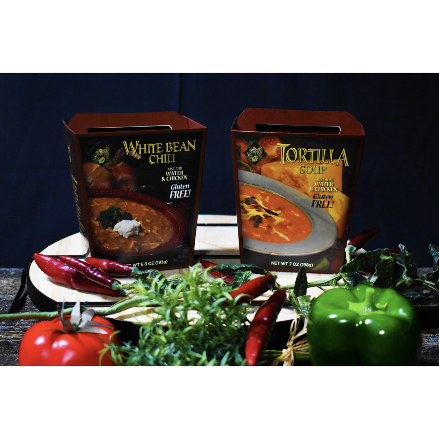 Enjoy delicious, hearty, piping hot soups from Plentiful Pantry. This four pack offers you 2 flavors of soup that add a little southwestern spice to your meal.
