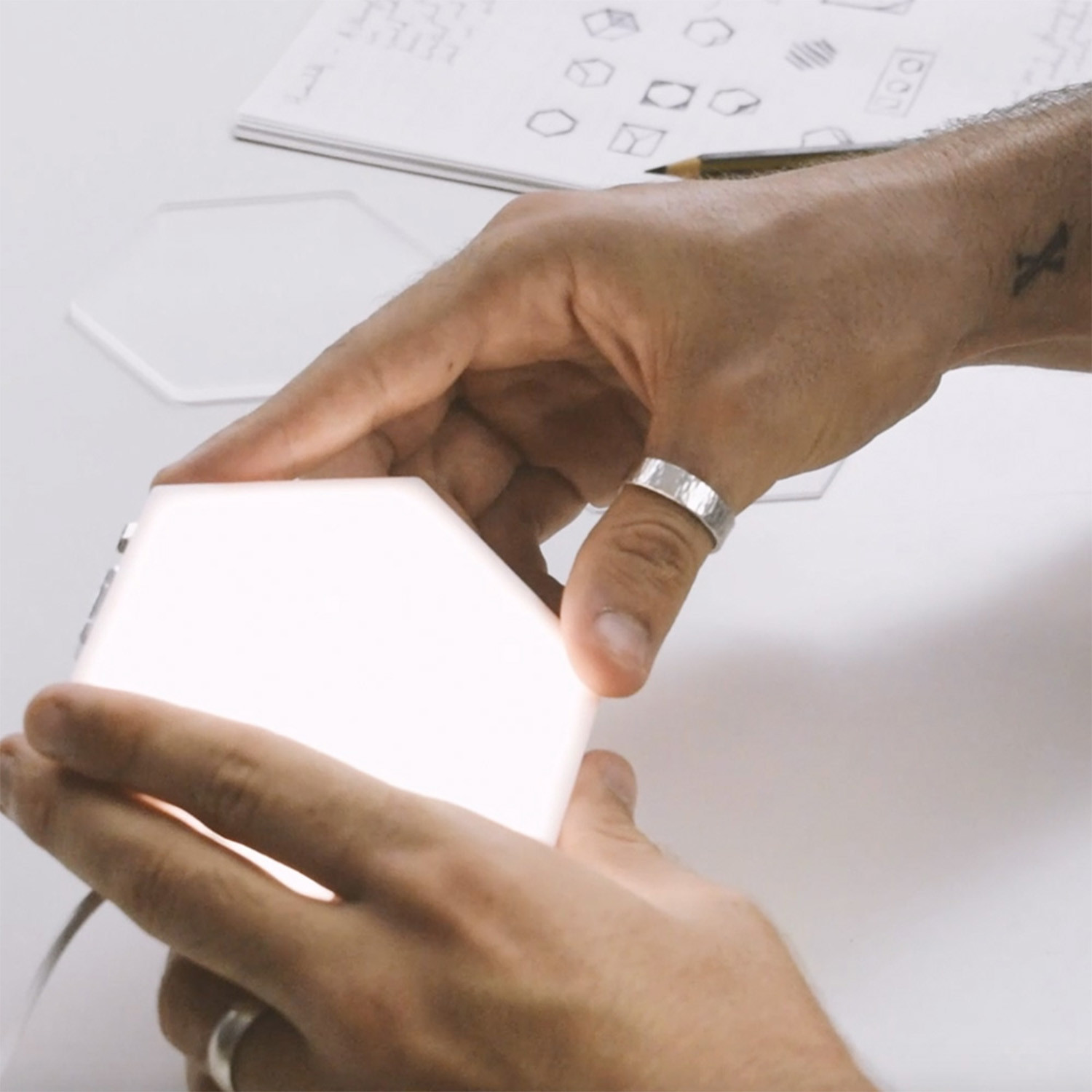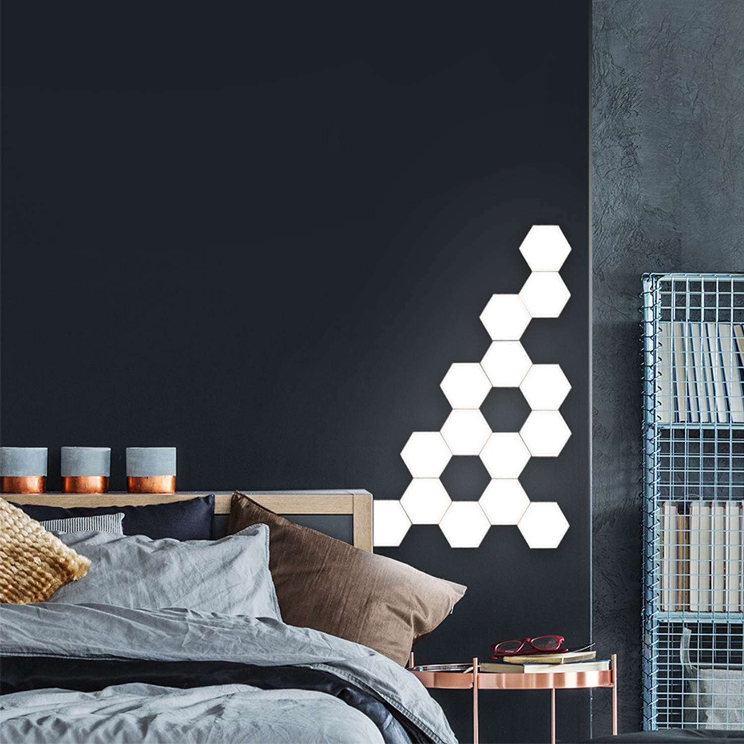 Polygon lights fuse design and creativity into a fun, functional lighting solution. These LED light tiles are designed with your vision in mind. You get to build the modular tiles into any structure you like! Simply mount the polygon light panels to the wall with the included sticky pads or hook them onto nails using the holes on the back of each module. Then, the touch sensitive lighting will illuminate your space for a fun and engaging experience.