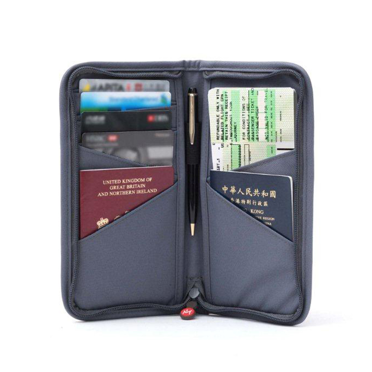 Fly like a bird with this travel pouch. It has room for your valuables: passport, tickets, credit cards, business cards, and pens with a zipper for safety. Protect your goods with this stylish, slim carrying case.