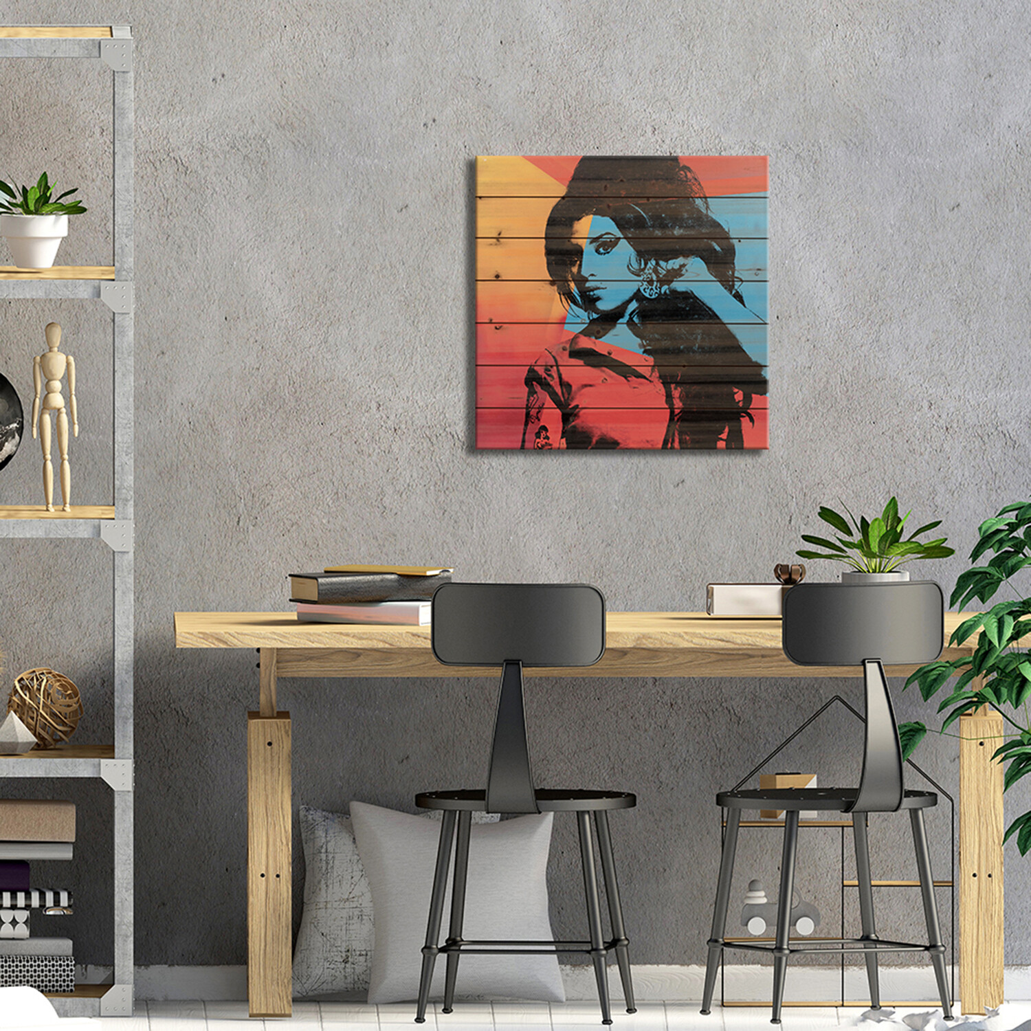 The woman on your wall is irreverent, exuberant, and full of attitude in this selection of pop wall art. Vibrant colors, playful themes, and the individualistic style element of wood pallet art make them show stopping pieces that bring your walls to life.