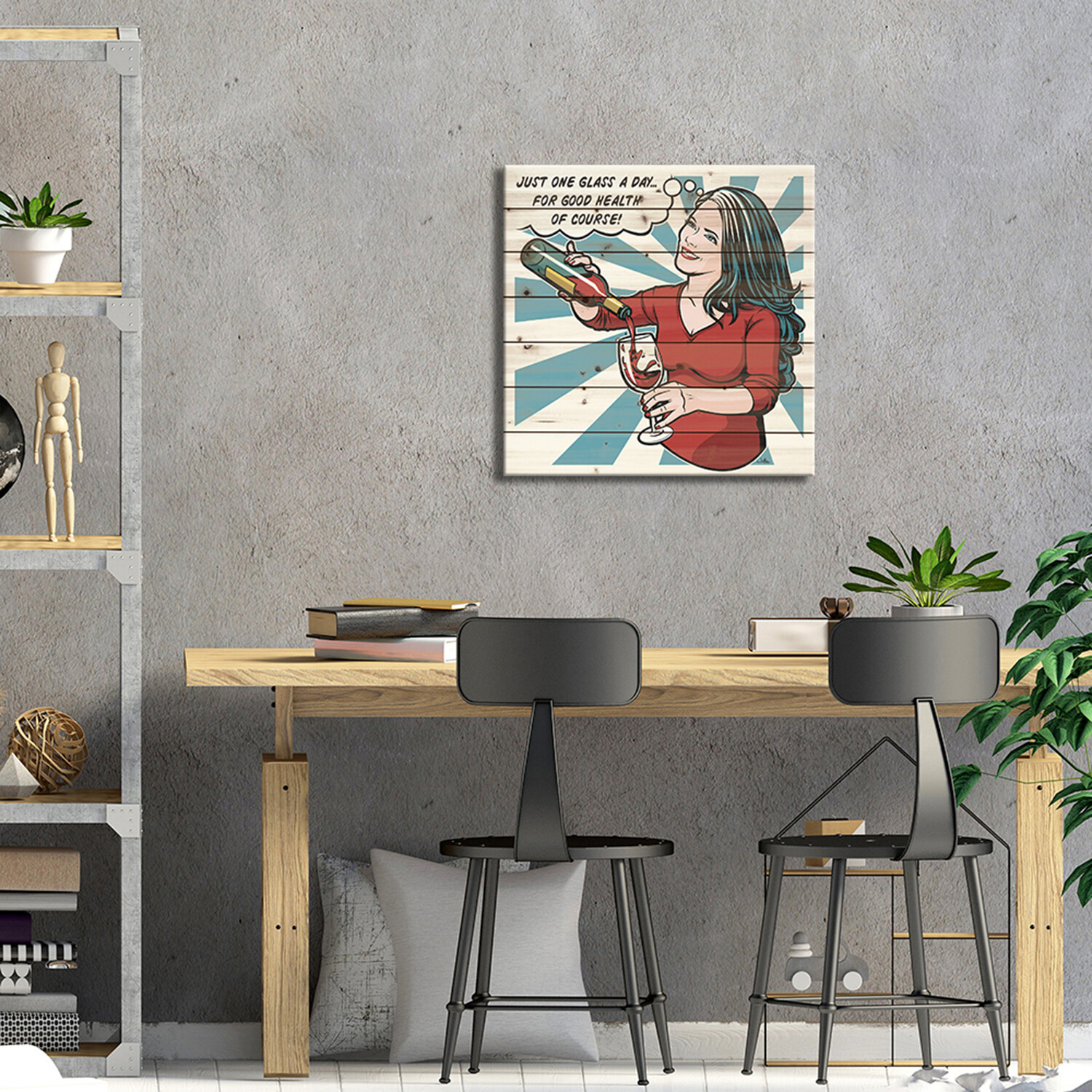 The woman on your wall is irreverent, exuberant, and full of attitude in this selection of pop wall art. Vibrant colors, playful themes, and the individualistic style element of wood pallet art make them show stopping pieces that bring your walls to life.