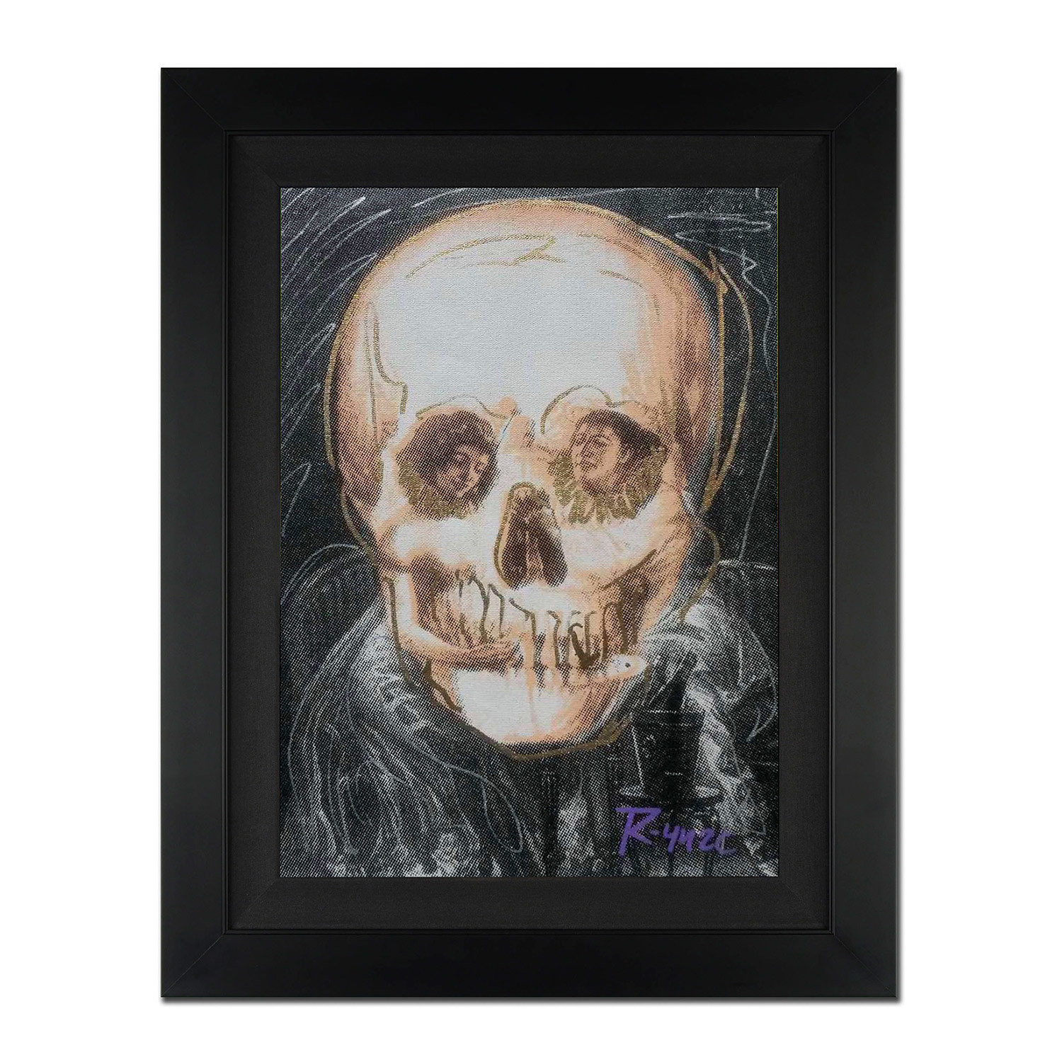Skull Beneath the Skin is a one-of-a-kind hand-pulled silkscreen and mixed media painting on canvas by Ringo 4u2c, hand signed by the artist. Ringo 4u2c (For You To See) is an American artist, photographer, musician and protege to the late Steve Kaufman (former assistant of Andy Warhol ). This piece comes with a frame and a certificate of authenticity.