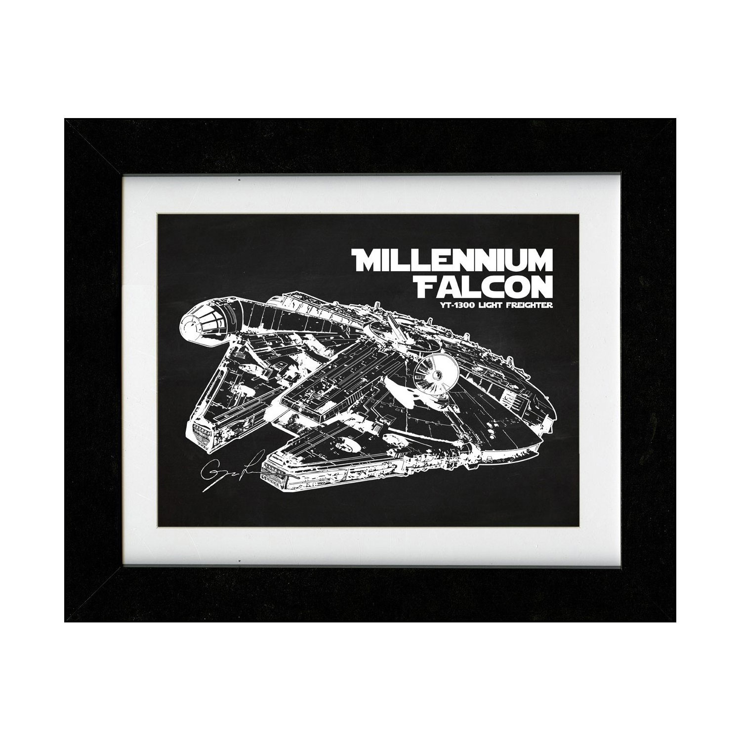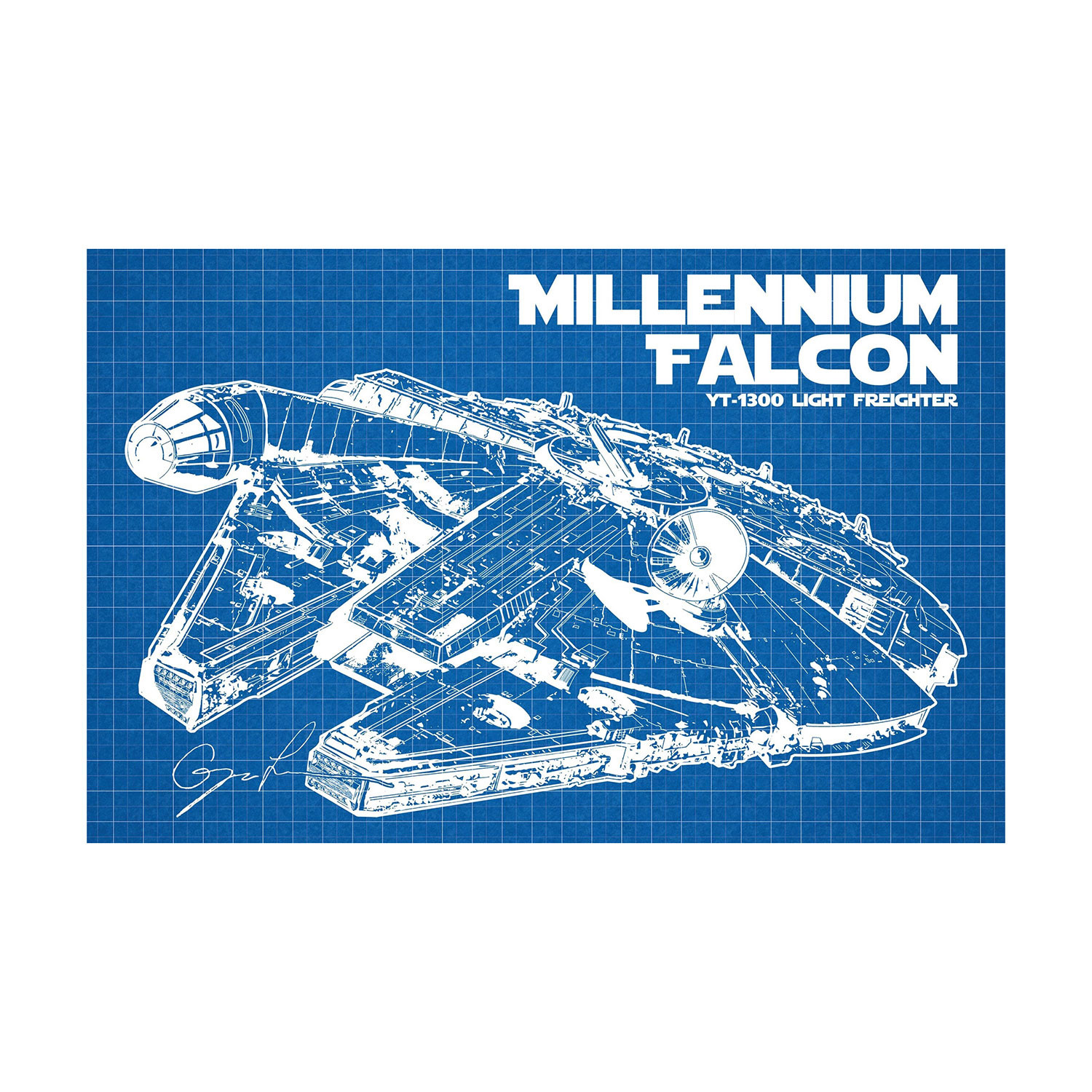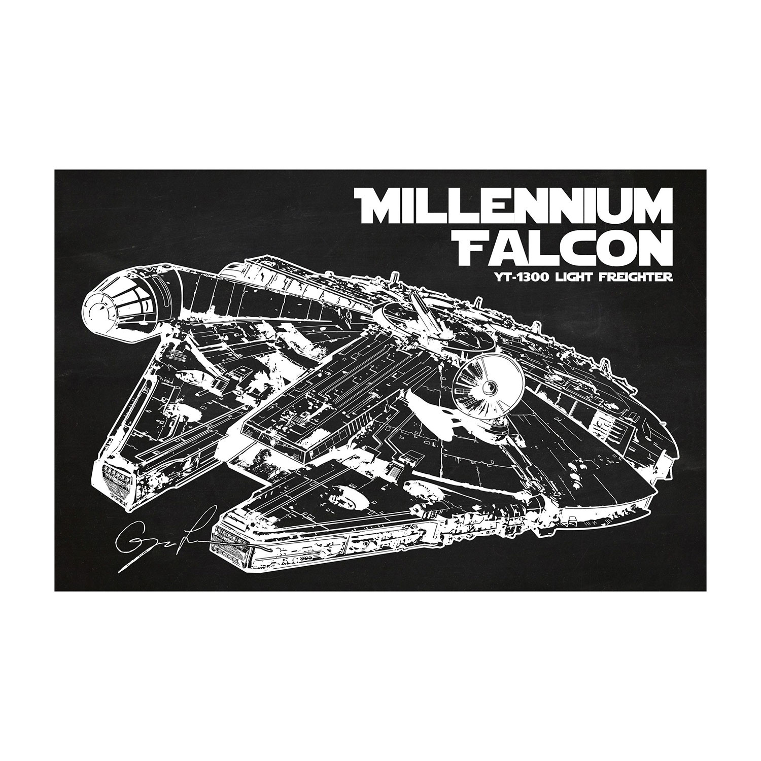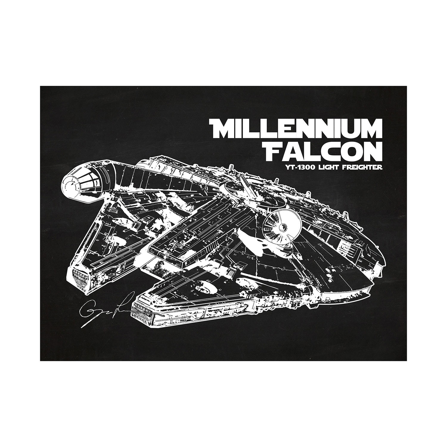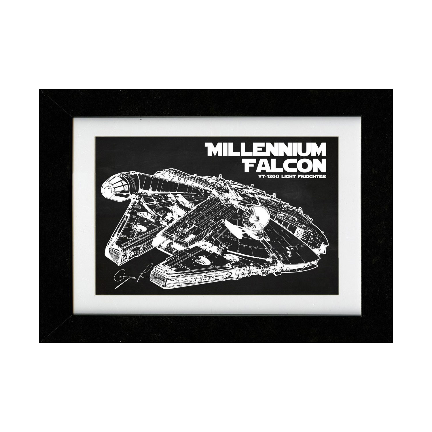Rendered with acrylic ink on top of thick, high quality 100 lb. paper, this patent print of the Millennium Falcon has stemmed from the inspiration of the original creators. Screen printed artwork can be identified by its thick raised ink, which seems to catch the eye from every angle. By hand printing every order, its artists create a prominent depth of field and texture on each poster.