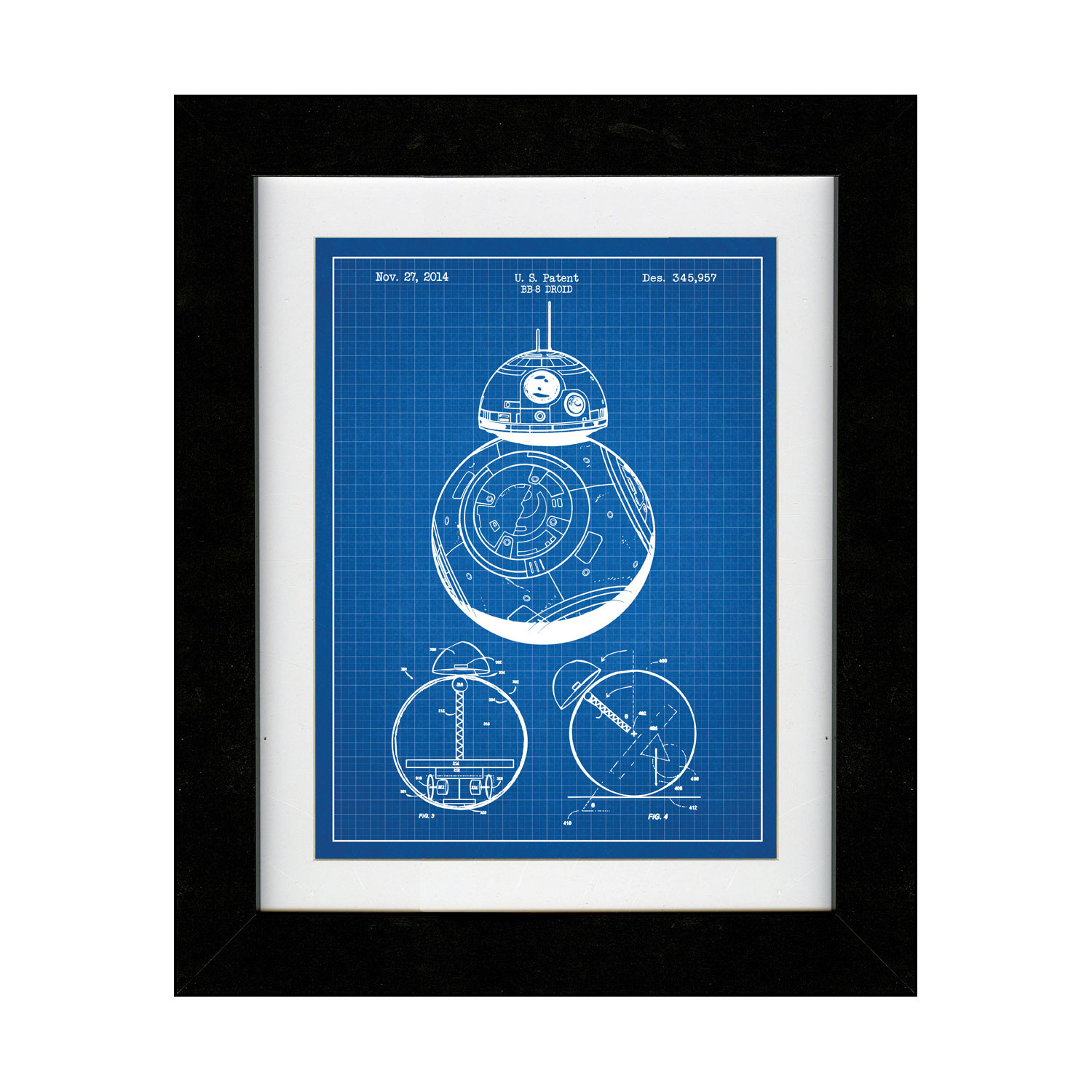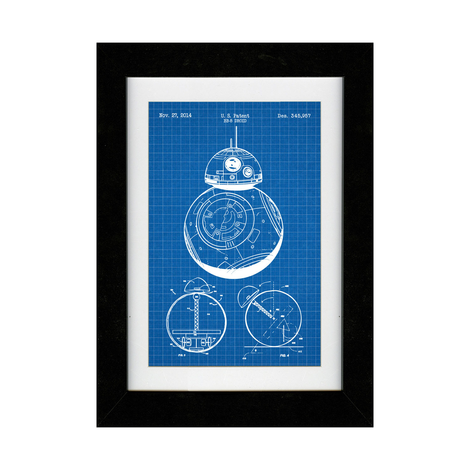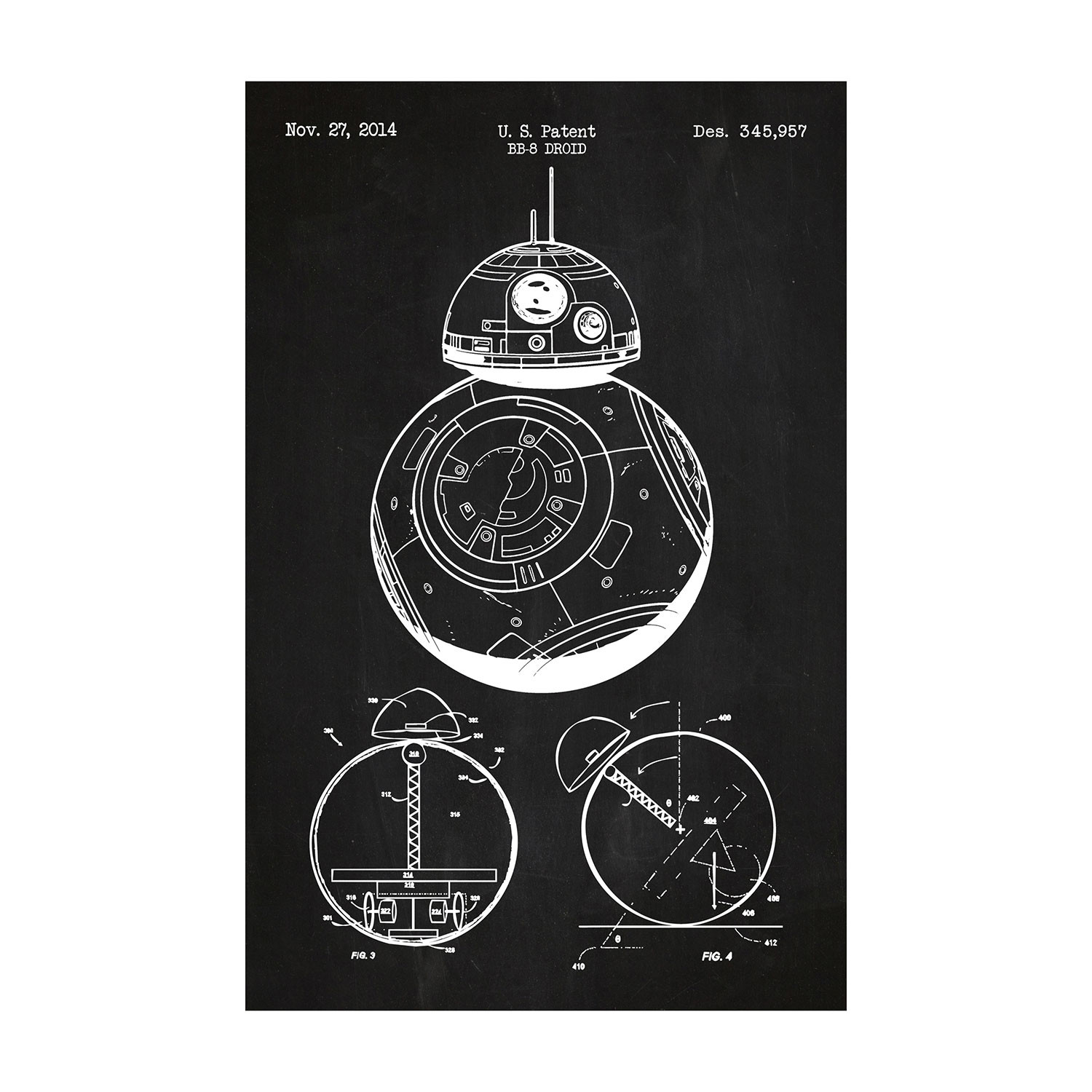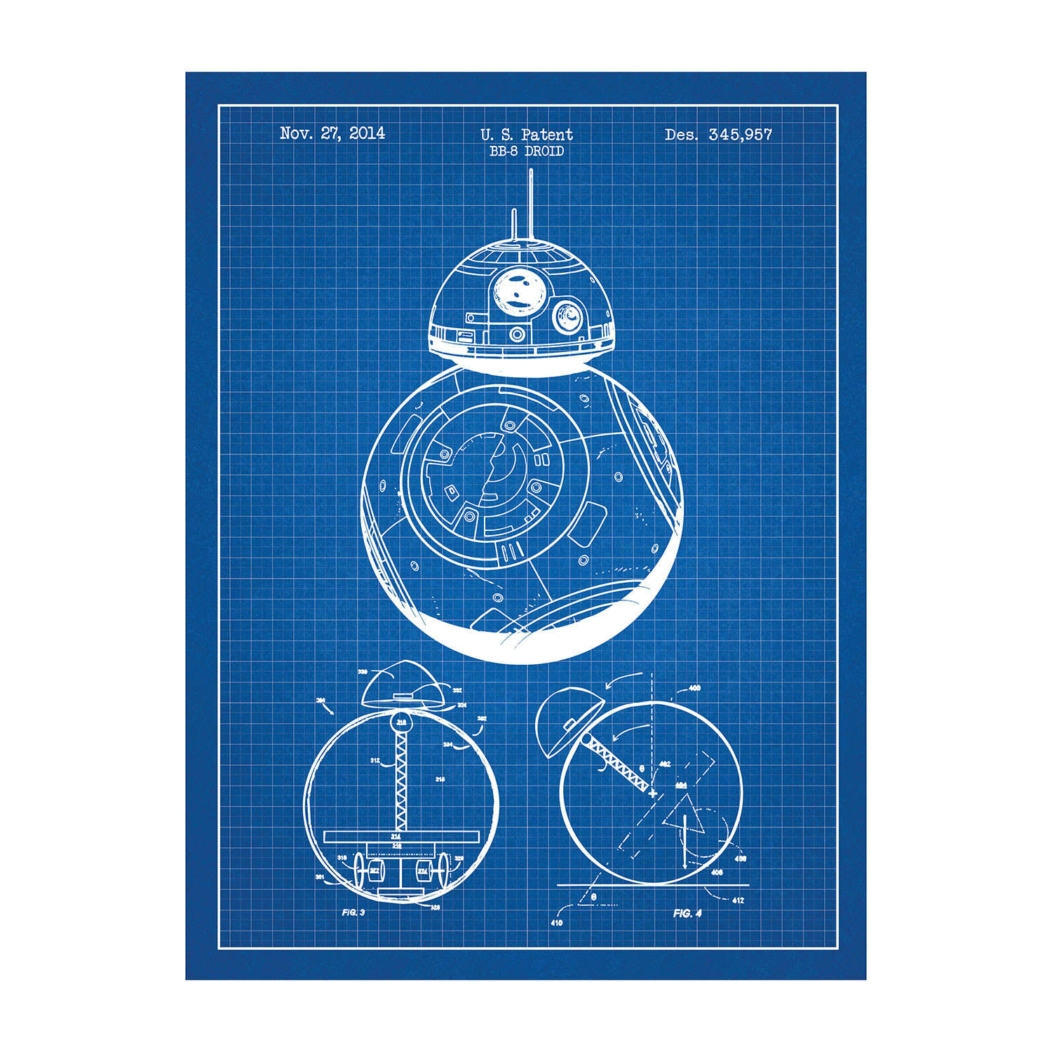 Rendered with acrylic ink on top of thick, high quality 100 lb. paper, this patent print of BB-8 has stemmed from the inspiration of the original creators. Screen printed artwork can be identified by its thick raised ink, which seems to catch the eye from every angle. By hand printing every order, its artists create a prominent depth of field and texture on each poster.