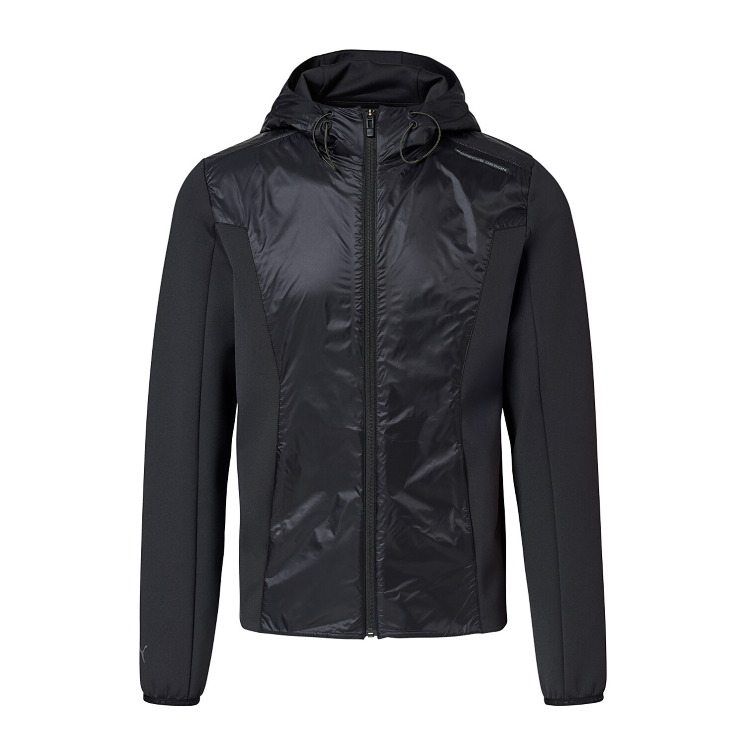Beautifully textured and made to move: few hoodies pack as much urban style into one design as the Porsche Design Spacer Zip-Up Hoodie. Matte and glossy panels create interesting contrasts. The elastic drawstring hood, with overlays that are echoed on the centre panel, not only turns heads but keeps the wind at bay. Manufactured entirely from innovative, high-comfort spacer fabric and with smart details like laser-cut detailing on the back, this hoodie is destined to become one of your wardrobe essentials.
