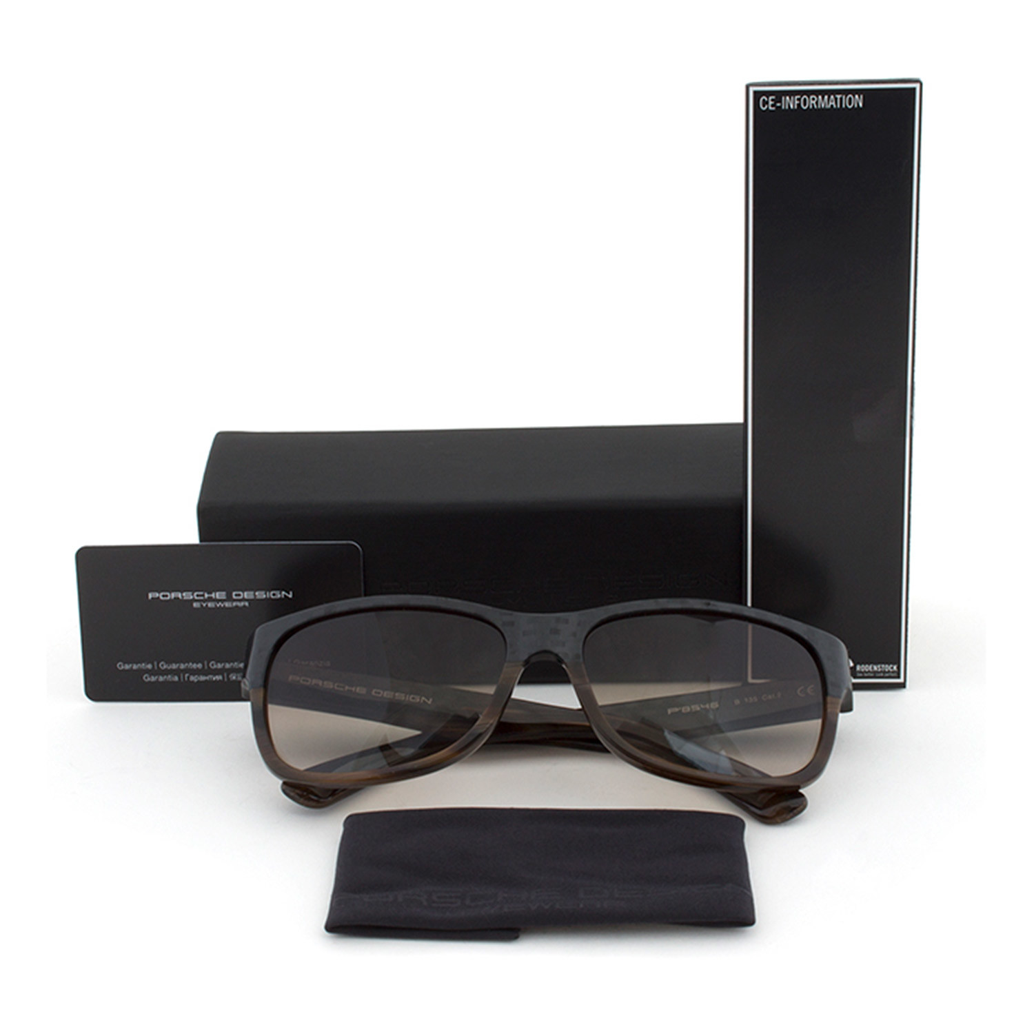 Ingeniously minimalist, these Porsche Design P8546 B Sunglasses are constructed with a clean sculpted burnished carbon and brown single bridge full rim wayfarer frame. Effectively enhancing this successful blueprint are the brown gradient silver mirror lenses and silver branding on the arms. Measuring 58-16-135mm, this item ships with its own case lens cleaning cloth and manufacturer's authentication tags.