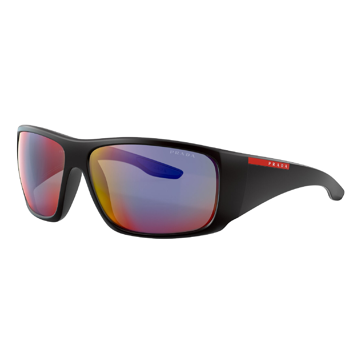 Men's Rectangle Wrap Sunglasses // Black + Dark Gray + Blue + Red