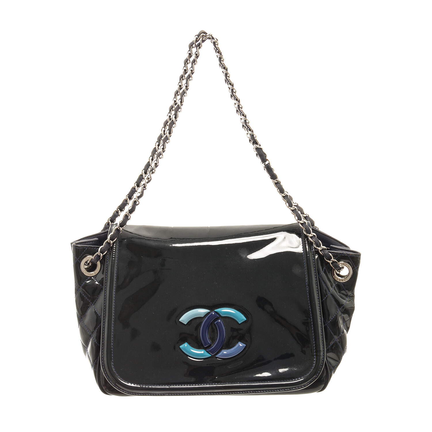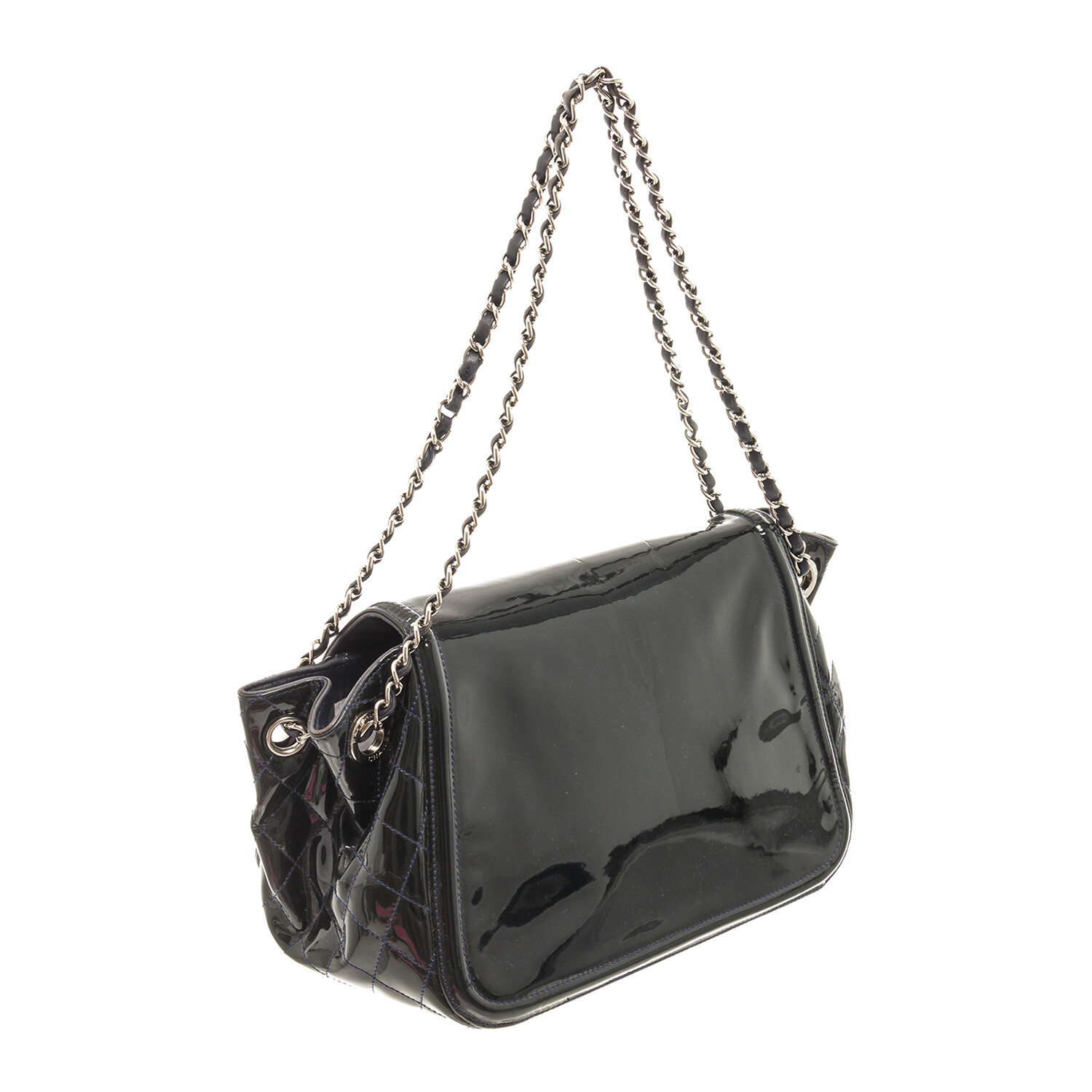 — Chanel Black Patent Leather Flap Shoulder Bag