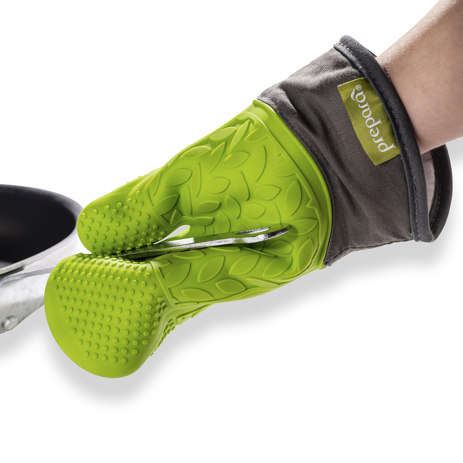The Prepara Oven Mitt is constructed of multi layer cotton and non-slip silicone grip which helps protect and give your wrist flexibility. The innovative extended cuff feature gives you extra protections when reaching into the oven or over other pots/pans on the stove. Handling hot dishes, pots, and pans just got so much easier.