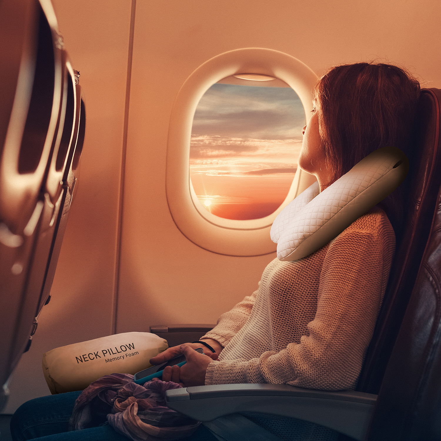 Make long trips or flights comfortable and cozy with this proprietary bamboo Memory Foam Neck Support Pillow. With its hypoallergenic bamboo fiber cover and proprietary breathing system, this pillow offers a comfortable place to rest your head when in an airplane or automobile — and it fits in any carry on bag, so you can always keep it handy.