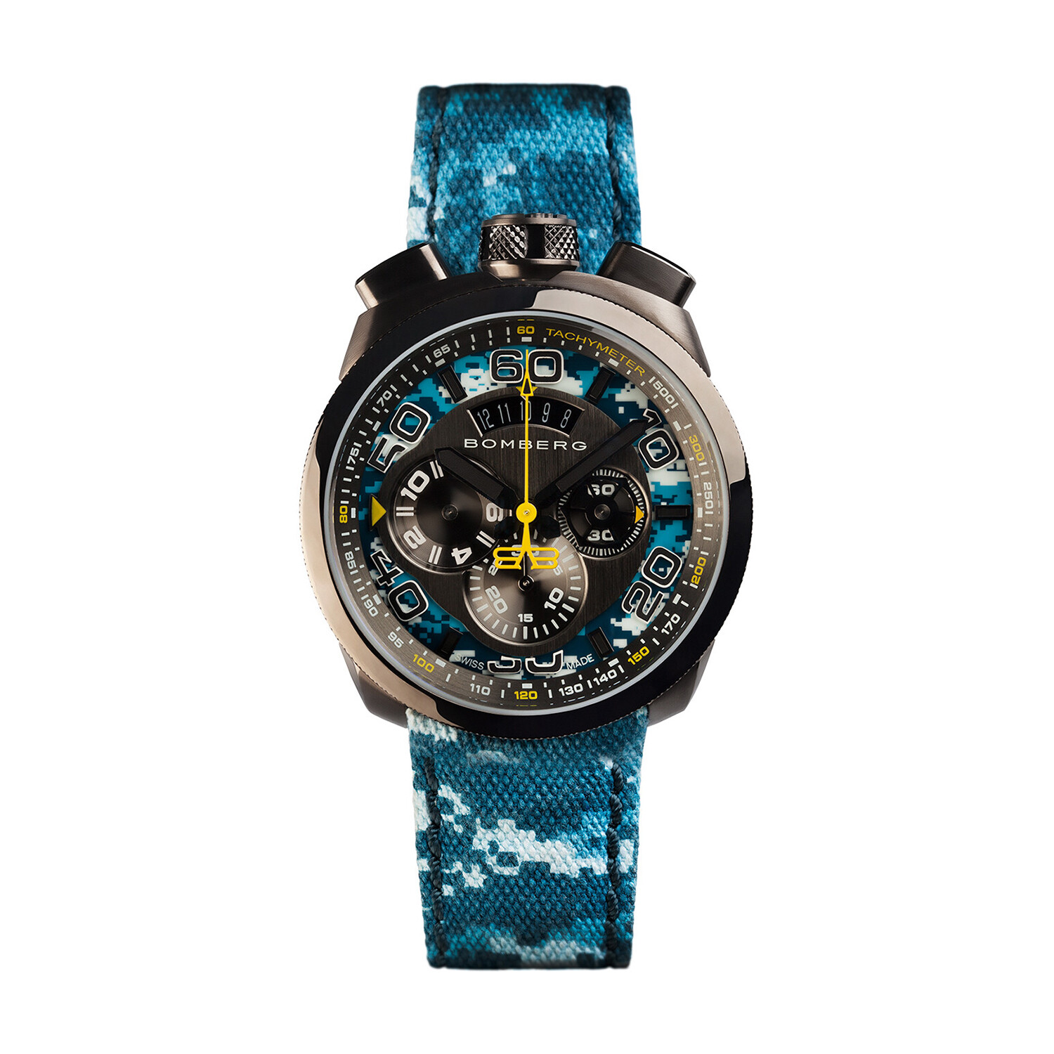 Bomberg Bolt-68 Blue Camouflage Chronograph Quartz // BS45CHPGM.035.3 // Store Display